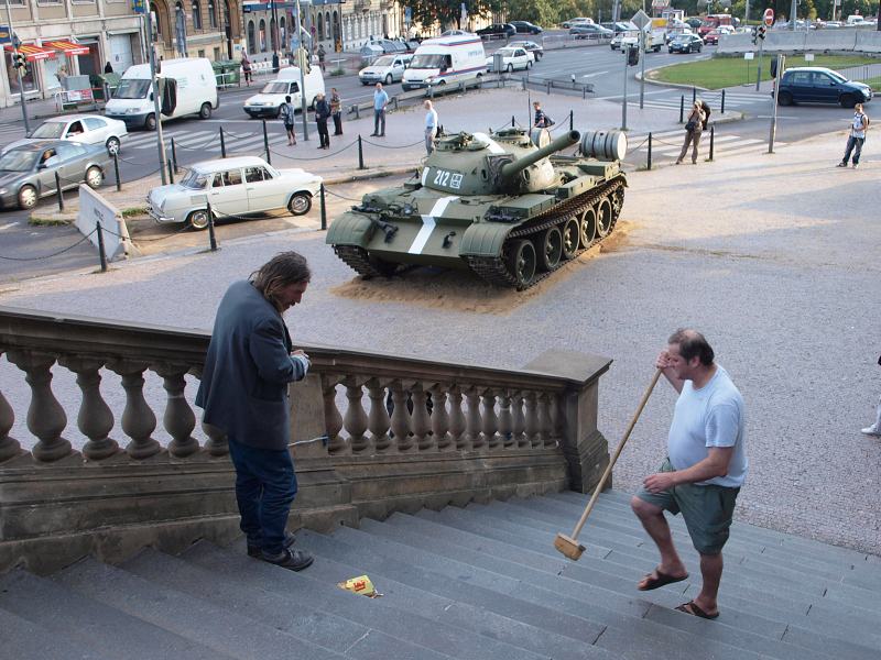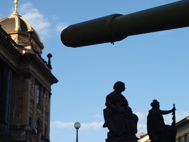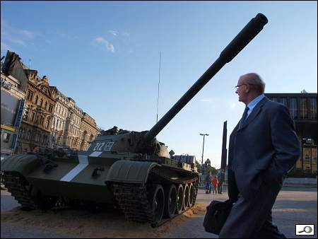 Před čtyřiceti lety jsem neměl u sebe foťák – neudělal jsem tenkrát ani jednu fotku. Po čtyřiceti letech jsem se ocitl znovu na Václavském náměstí v osm ráno a vida, tank tu byl opět. Asi deset minut jsem tu okouněl a vzpomínal na to hnusné ráno bez foťáku.