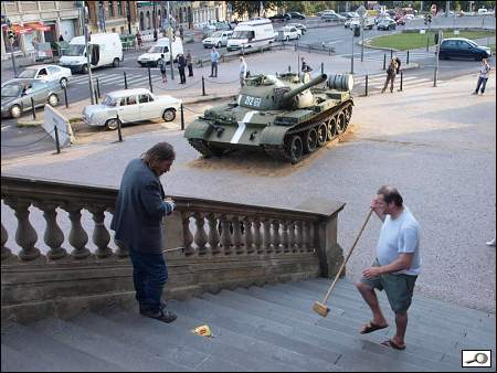 Tank se stává atrakcí pro turisty. Doufejme, že tu nezůstane ani na věčné časy, ani dočasně.