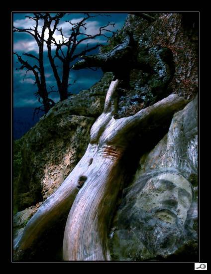 Jan Fichtner, velmi úspěšný a pravidelný účastník naší soutěže, poslal toto Zrození lesní víly. Obrázek se tetelí někde v třetí desítce a v jistém slova smyslu dobře mu tak, protože nesplňuje zadání, anžto to není akt. Navíc jsem ho podezíral, že se to původně jmenovalo nějak jako Ukřižování, a bůh ví, jak to bylo. Na iFotovideu má Lesopanu, tuhle rozeklanou fošnu bez ježíšovského obličeje v koutě. Navíc do soutěže zadal i alternativu pod názvem Očima starce! Nicméně je to bezpochyby zajímavý obraz a stojí za prohlédnutí, ostatně i jako další autorovy snímky.