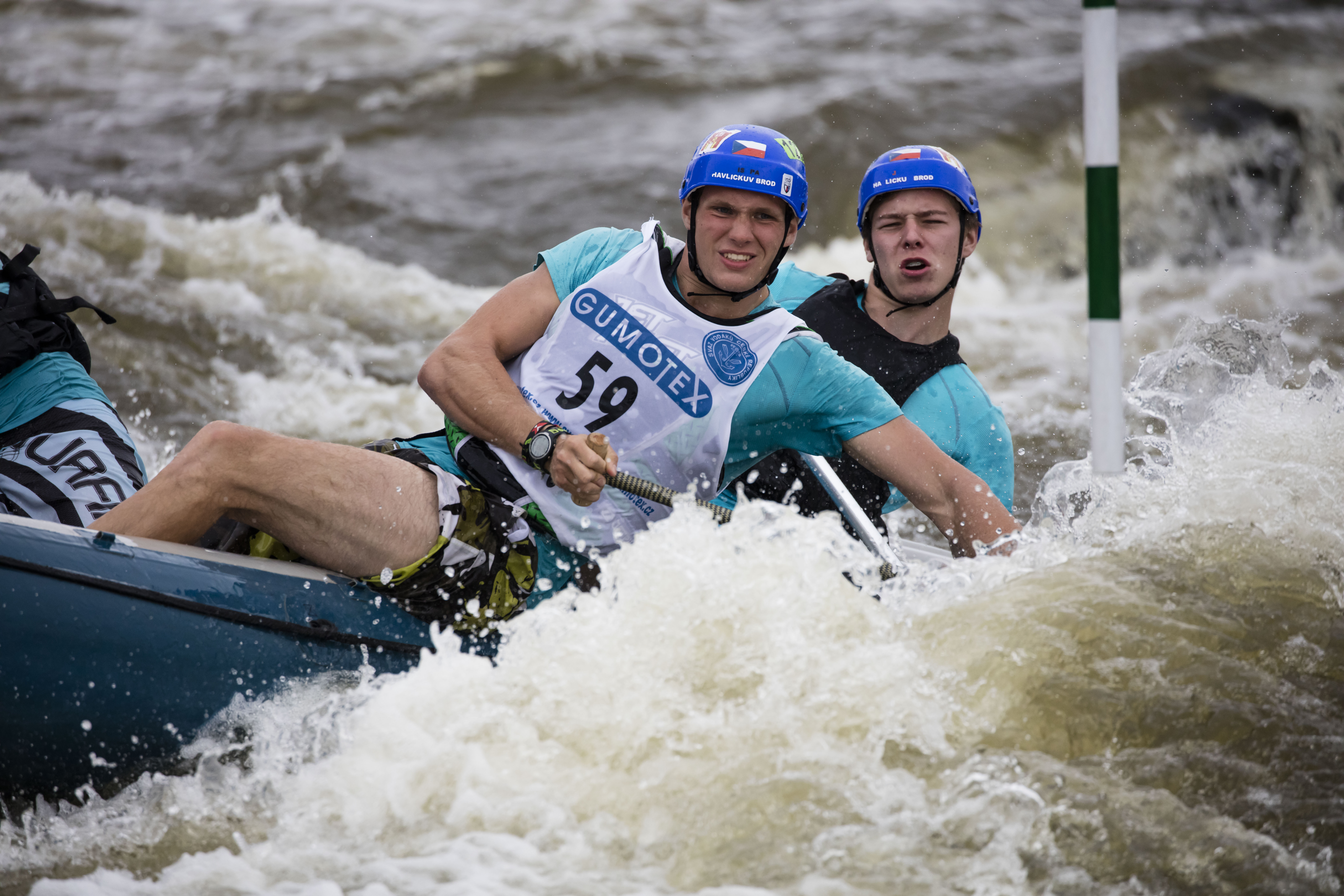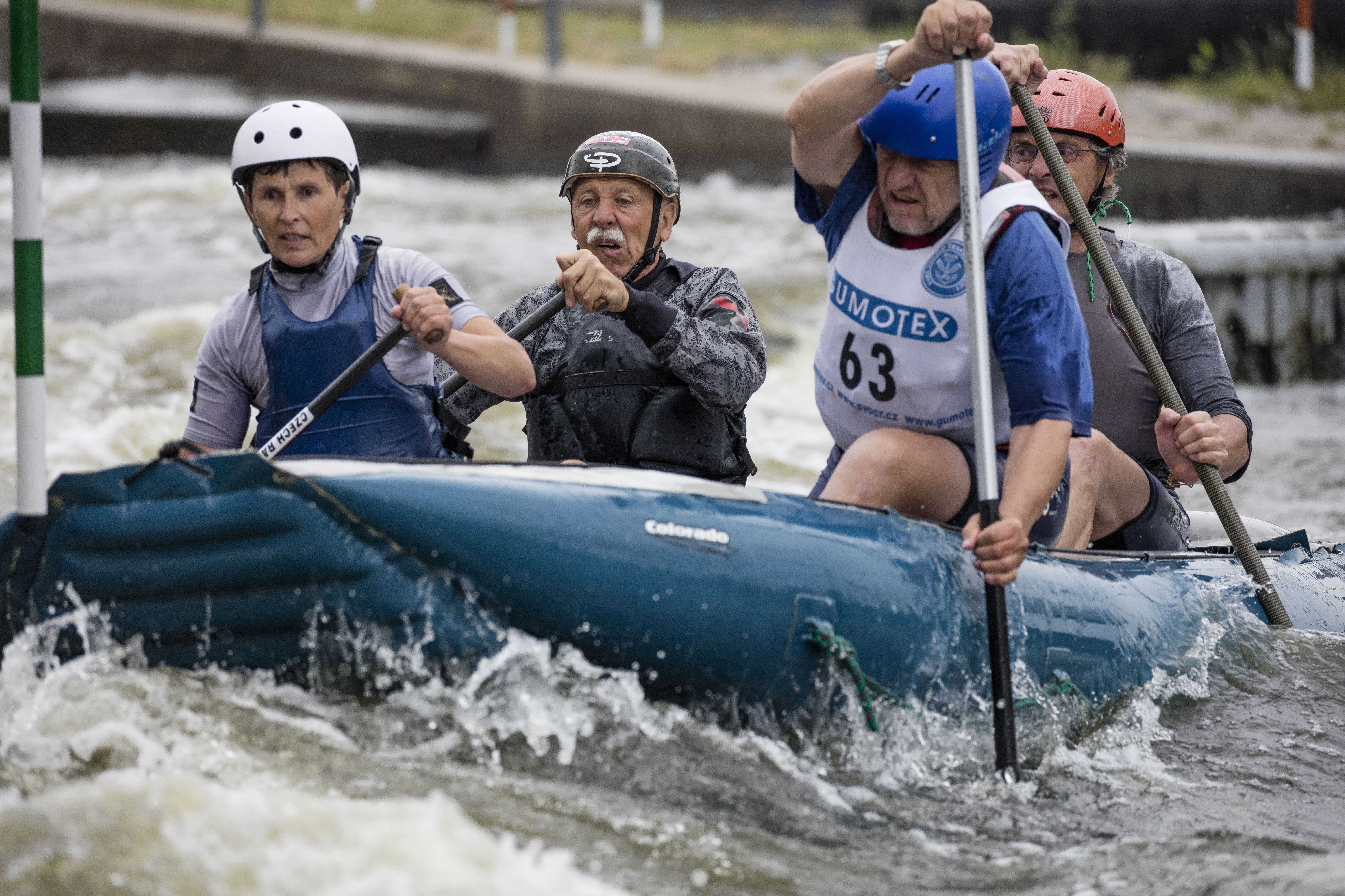 Model 5DS R jsem si mohl vyzkoušet v Praze v Tróji při závodech raftů ve vodáckém areálu. Bylo mizerné počasí, bylo tedy třeba použít vyššího ISO, abych dosáhl krátkých expozičních dob. Fotil jsem objektivem 100-400/4.5-5.6 IS II USM, informoval jsem o něm zde. Je to tedy také pořád ještě novinka a patří k objektivům, doporučeným pro model 5DS. Přístroj má 61 zaostřovacích bodů. Ze zaostřovacích režimů jsem volil jednobodové ostření plus doprovod pomocných bodů, pro živou fotografii se mi osvědčuje nejlépe. Režim ostření jsem přirozeně volil Ai-servo, tedy průběžné (kontinuální) ostření, kdy přístroj ustavičně doostřuje pohybující se objekt.