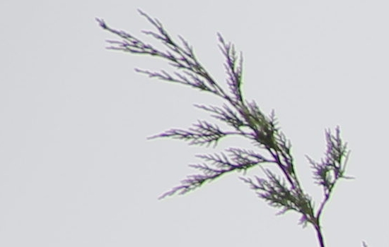 Aberace je zanedbatelná, toto je výřez 100% z rohu při ohnisku f=105 mm.