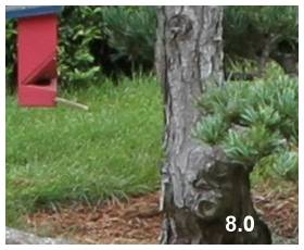 Kresba je dost vyrovnaná v celém rozsahu clon, při plné světelnosti je sice slabší, ale použitelná. Kresba vrcholí někde mezi F8.0-11, při F16 kvůli difrakci (ohybu světla) vadne a ta clona F22 je značně problematická, obecně, nejen na tomto objektivu. Použito tělo Canon 7D, výřez 100%, na proklik celý obrázek.