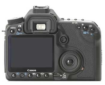 Ovládání je v podstatě totožné u všech modelů vyšší třídy Canonu. Přístroj se zapíná páčkou u spodní hrany přístroje, přičemž páčka má tři polohy: OFF, ON a ON s odkazem na ploché ovládací kolečko. Pokud páčku přepneme do této polohy, ovládací kolečko v zásadě slouží k ovládání expoziční kompenzace, v režimu MANUAL pak k ovládání clony (jako skoro vše lze i toto změnit v uživatelských nastaveních).