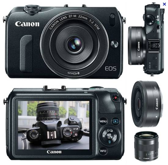 Důležitou součástí systému je adaptér, který umožňuje použít kterýkoli ze 70 vyráběných EF Canon objektivů. Standardně budou EOS M vybaveny setovým objektivem nové generace, 18-55/3.5-5.6 s ostřením STM (rychlý lineární motor) – přední část se neotáčí, to je důležité pro použití polarizačního nebo přechodového filtru. Podobné vlastnosti má i „pancake“ 22/2.0 STM objektiv.