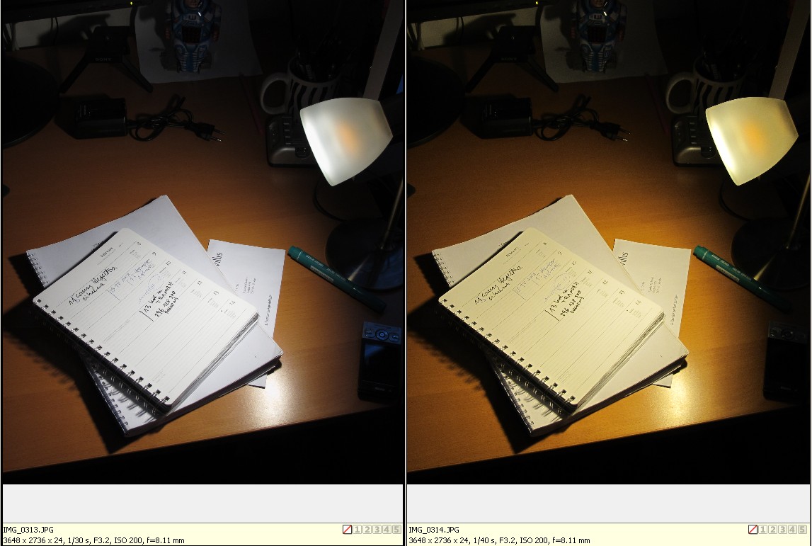 O patro níž pak najdeme tlačítka pro ovládání režimu ostření a režimu měření expozice. Doleji je čtyřcestný volič s přiřazenými funkcemi manuální ostření, blesk, samospoušť a makro. Úplně dole pak je režim displeje a menu. Ergonomicky je to na můj vkus poněkud titěrné a když ten foťák držím, pořád něco mačkám, je třeba si navyknout klást palec mezi tlačítko prohlížení a hvězdičku. Další drobná obtíž je s čtyřcestným voličem. Ten má kolem sebe roller, kroužek na ovládání především prvků expozice. Je tenký a v teplotách kolem mínus sedmi jsem měl potíže to zkřehlými prsty rozpoznat. No a konečně nejsem nadšený nikdy, když je společná šachtle pro kartu a baterku. Ano, já vím, z boku je slot pro USB a má se fotka tahat přes kabel a karta má zůstávat uvnitř. Ale stejně nejsem nadšený. Menu Velké menu je příjemně jednoduché, samozřejmě v češtině. Má oddíl fotomenu, konfigurace a uživatelské menu. Ve fotomenu nás zaujme hlavně vypnutí / zapnutí digitálního zoomu, zapnutí / vypnutí kontinuálního ostření a zapnutí / vypnutí vyrovnávání kontrastu. V konfiguračním oddíle nastavujeme datum, jazyk, jas LCD a pod. Jak se s ním fotí Obrazová kvalita ![]() To se snad dá charakterizovat jako dosti slušné. Ani soudkové zkreslení není nijak výrazné při širokoúhlém zobrazení, přičemž při ekvivalentu 28 mm by objektiv měl na soudek právo. Tohle je velmi slušné: ![]() Také stabilizace má velmi dobrý výkon – na ukázce mám srovnání při plném vyjetí zoomu a 1/10 z ruky v natažených pažích. Asi nemusím vysvětlovat, který obrázek k čemu patří, je to zase výřez 1:1. ![]() WB a šum ![]() Zkoumání šumu přineslo velmi příjemné překvapení. Výrobce hovoří o “dvojím odstraňování”, šumu, nicméně, fakt je, že výsledek je velmi dobrý. Obrázky jsou použitelné – v rámci rozumně nastavených kritérií, samozřejmě – i při 3200 ISO a to už je opravdu ale hodně vysoká citlivost. Při 400 ISO nejsou vůbec žádné problémy i při velmi přísných kritériích Co mě ale překvapilo a je to vidět i na ukázce, je to, že sice expozice šla jak podle příručky, tedy změnou ISO o jeden stupeň se o jeden stupeň změnila doba osvitu, avšak obrázky nejsou stejně tmavé: na ukázce vlevo nahoře 3200 ISO a je to tmavé a vpravo dole 400 ISO a je to nejsvětlejší. Nechci spekulovat, jen konstatuji, že to tak vyšlo: ![]() Automatický kontrast je totéž co jinde d-lighting a pod. Co má zkušenost sahá, nejúčinnější jsou v tomto směru přístroje Sony, také zde je účinek nikoli nulový, ale nikoli oslnivý. Vlevo na naší ukázce je při zapnuté, vpravo při vypnutím vyrovnání kontrastu. ![]() Shrnutí Možné že jsem tu až moc chválil, jenže mě nebaví zkoumat foťáky, které se chválit nedají a vybírám si fakt jen tu špičku. No a co je to platný… Canon G11 ke špičce holt patří. Ukázky: