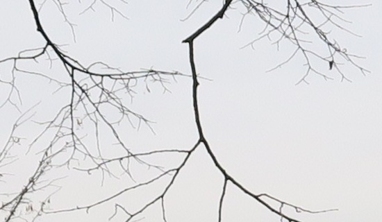 O náběhu dnes už nemá smysl hovořit, to už dlouho není limitující faktor. Příjemná je i rychlost ostření, odezva je okamžitá, na živou fotografii si můžeme bez ostychu troufnout. Byl jsem hodně zvědavý na kvalitu objektivu. Ten má vysokou světelnost F1.8 na kratším konci a F2.8 na tom delším. Nejvyšší clonu má jenom F11, to je velmi rozumné, jelikož pak hrozí ohyb světla o hrany clony, tzv. difrakce s následkem prudkého zhoršení kvality. Při tak krátkých fyzických ohniskových vzdálenostech stejně musíme počítat se značnou hloubkou ostrosti. Kresba má obvyklý průběh, je poněkud měkčí při plné světelnosti a na F11 vadne, nikoli ale pod hranici použitelnosti. Zde je výřez 100% z rohu: