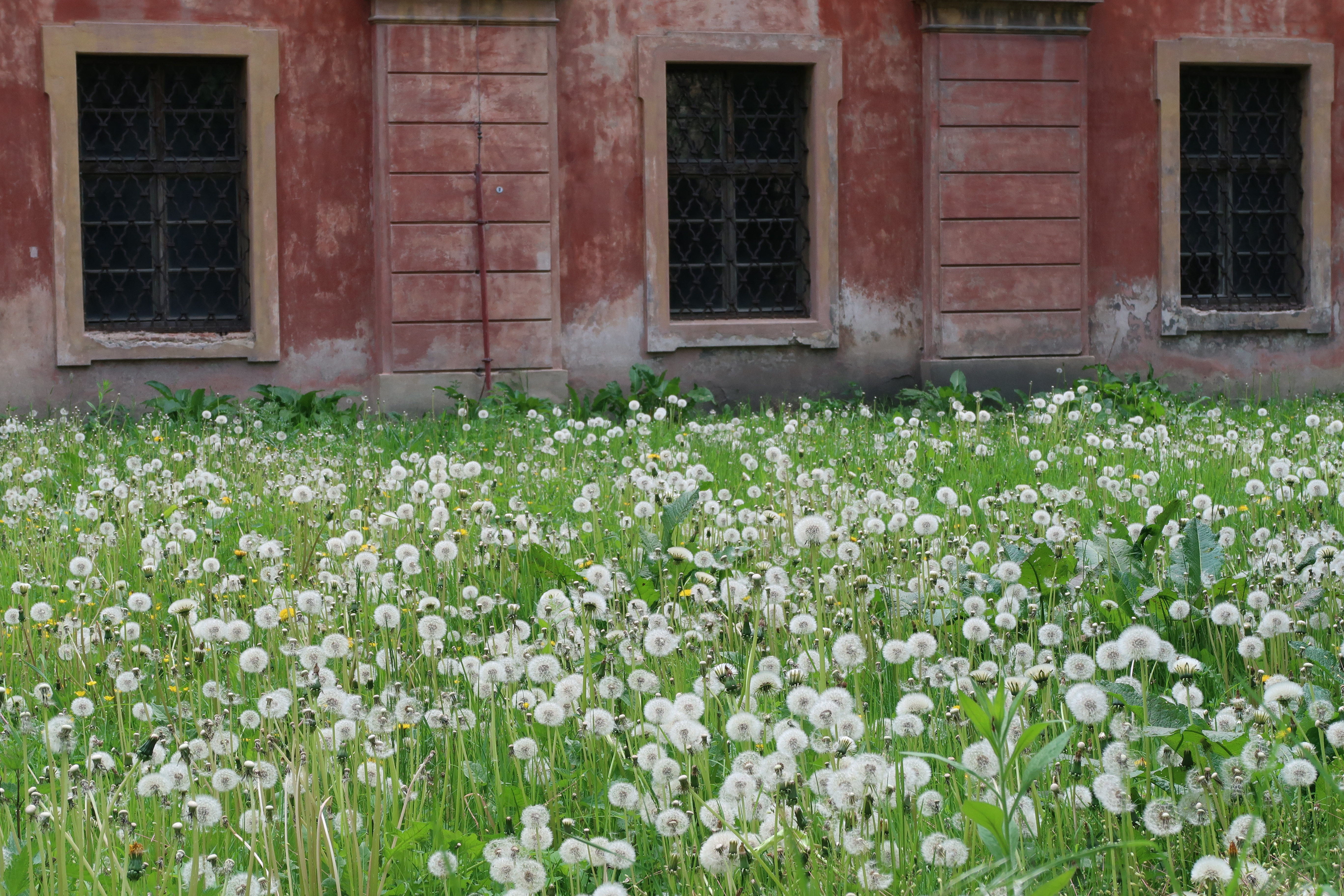 Skončíme opět venku. Obrovská budova čeká na smilování… a je stejně pomíjivá, jako ty paličky pampelišek. Foukneš, a zmizí…
