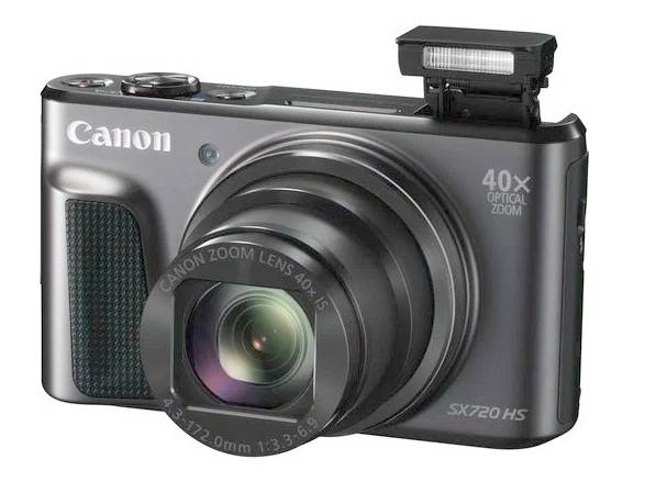 Canon SX720 je reprezentant univerzálního kompaktu v pravém slova smyslu, technicky vyspělého obrazového zápisníku. Jho jádrem je 1 /2.3 palcový snímač CMOS s dvaceti miliony pixelů, spolupracující s procesorem Digic 6. Objektiv je čtyřicetinásobný zoom s ekvivalentem 24 až 960 mm. Hledáček nemá, je vybaven třípalcovým displejem. Video natáčí HD 1080/60p. Má stabilizaci, vestavěnou wifinu s NFC (spárování přiložením). Io má až 3200, sérii až 5,0 fps. K zajímavostem patří automatické zoomování při sledování objetu a pomůcka, která atomaticky vytváří na cestách kompilaci z fotek a pořízených videí. Kompakt zamýšlený jako obrazový zápisník má cenu 380 dolarů.