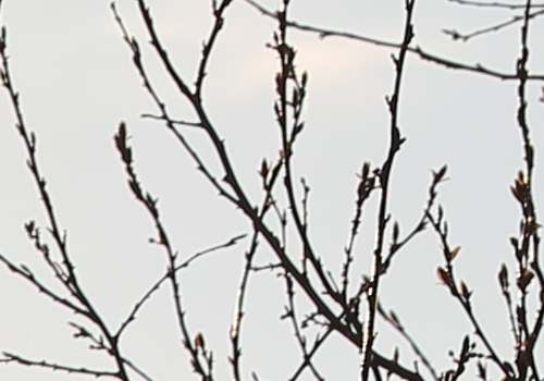 O nějaké chromatické aberaci nemá smysl mluvit, na ukázce je 100% zvětšení, foceno proti jasnému mraku s přexpozicí +2 / 3.