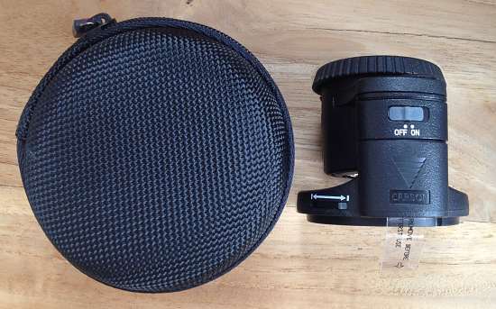 Zajímavý výrobek americké firmy Carson Optical zaměřené na zvětšovací skla, kapesní mikroskopy, dalekohledy a další optické přístroje velmi pomáhá při čištění snímačů jednookých zrcadlovek. Vyzkoušel jsem k plné spokojenosti! Jde o lupu umístěnou v plastovém pouzdře, které je otočně připevněné na opěrce vybavené ve spodní části šesti LED diodami. Lupa zvětšuje pětkrát, vyšroubováním si nastavíte vzdálenost od čipu. Vypínačem zapnete diody a jasně vidíte nečistoty na snímači. Lupu lze odklonit o 45 stupňů a pak můžete zasahovat uvnitř a diody vám dál svítí na práci. Na snímku vpravo je celá ta věcička dobře vidět. Dodává se v pouzdře, takže ji můžete s sebou tahat po čertech ďáblech a dovedu si ji přestavovat i na fotoexpedici, jakou jsme zde představovali s Tomášem Mähringem. Na snímku vidíte vypínač a ze spodní části vyčuhuje izolační páska – takhle přístroj vytáhnete zcela nový z pouzdra a po vytažení pásky se baterka aktivuje a ihned můžete pracovat.