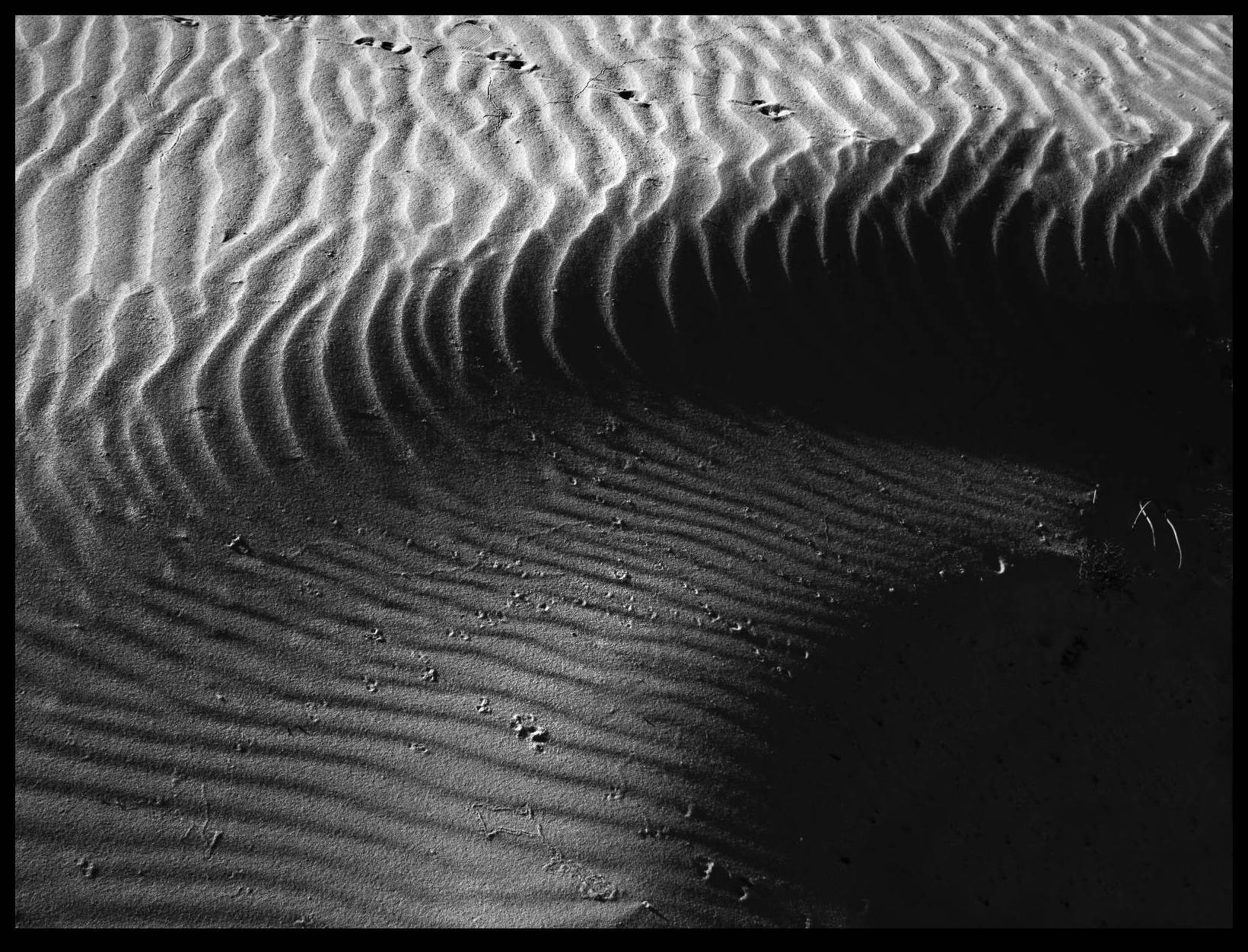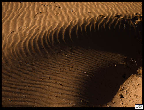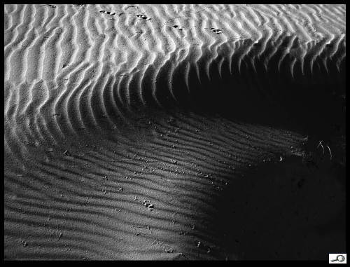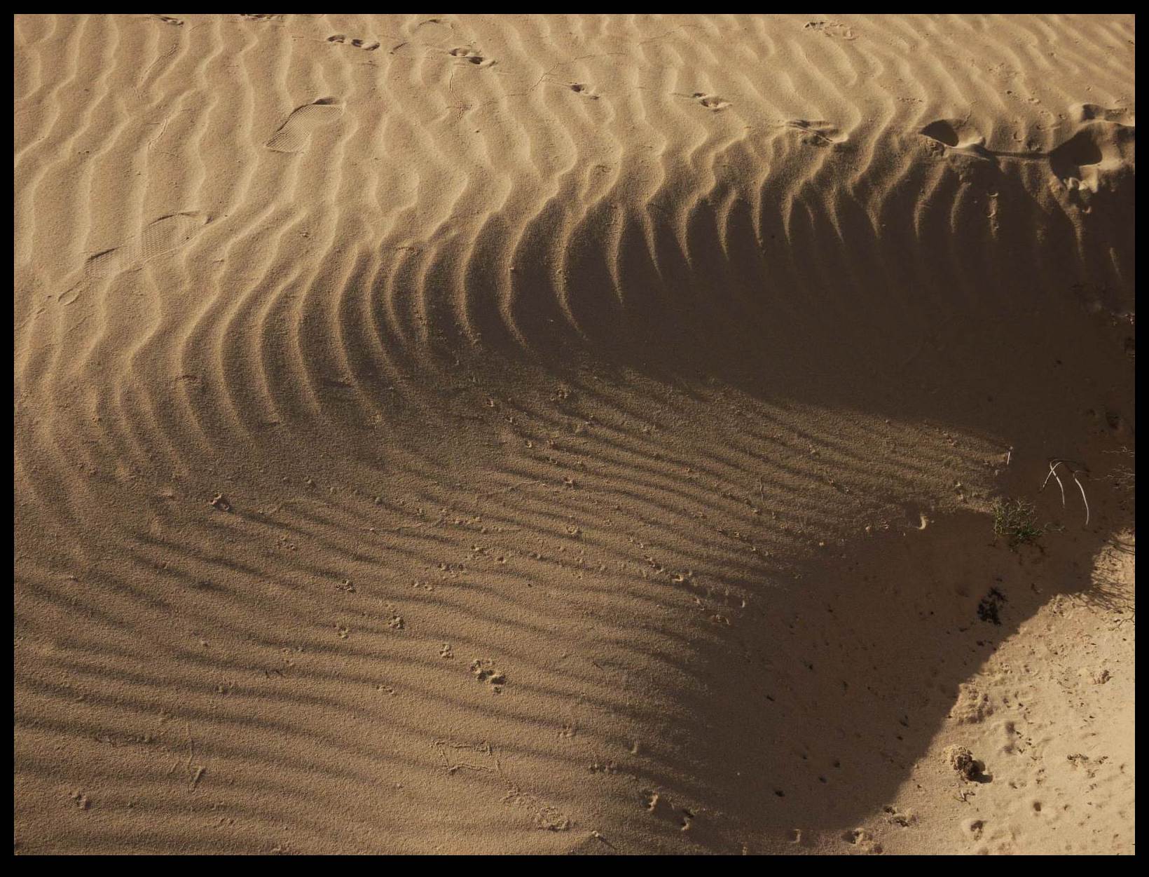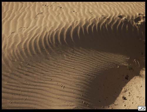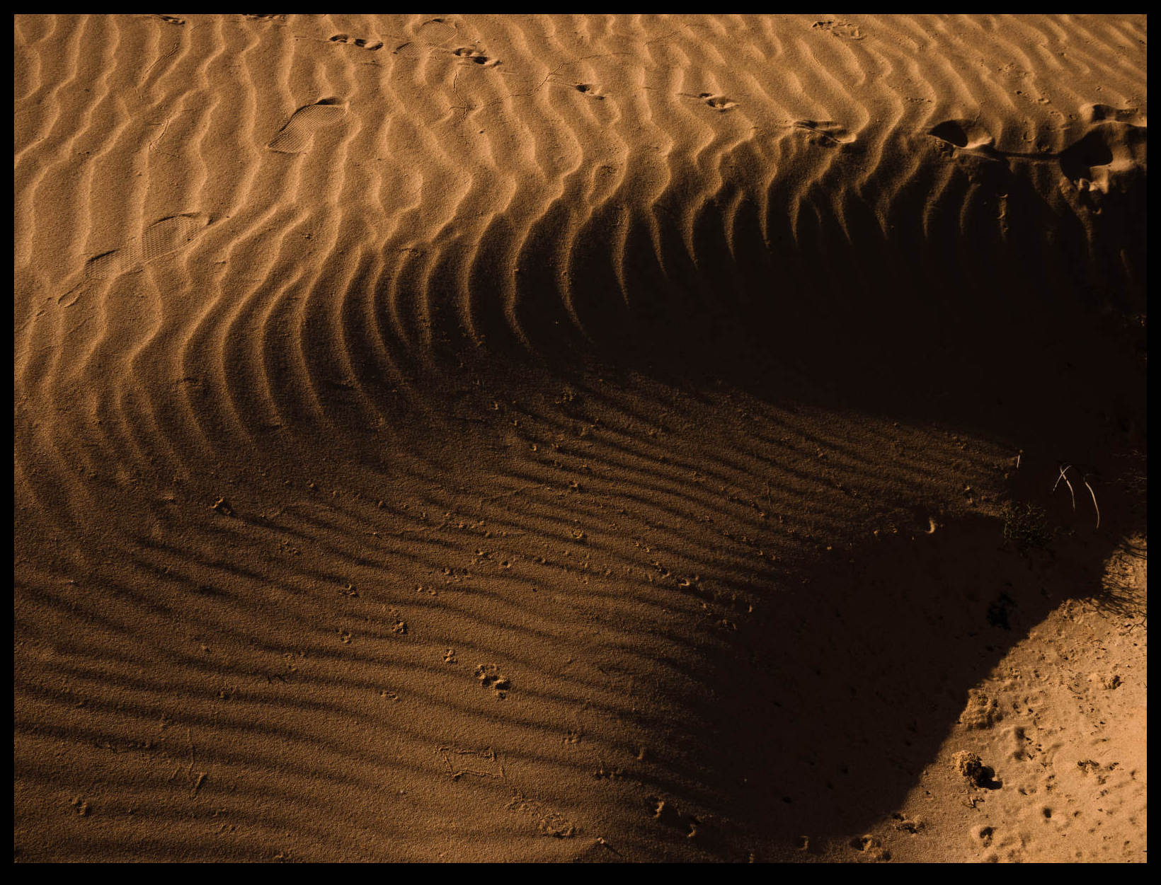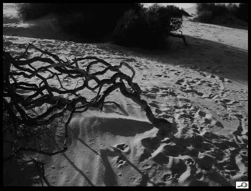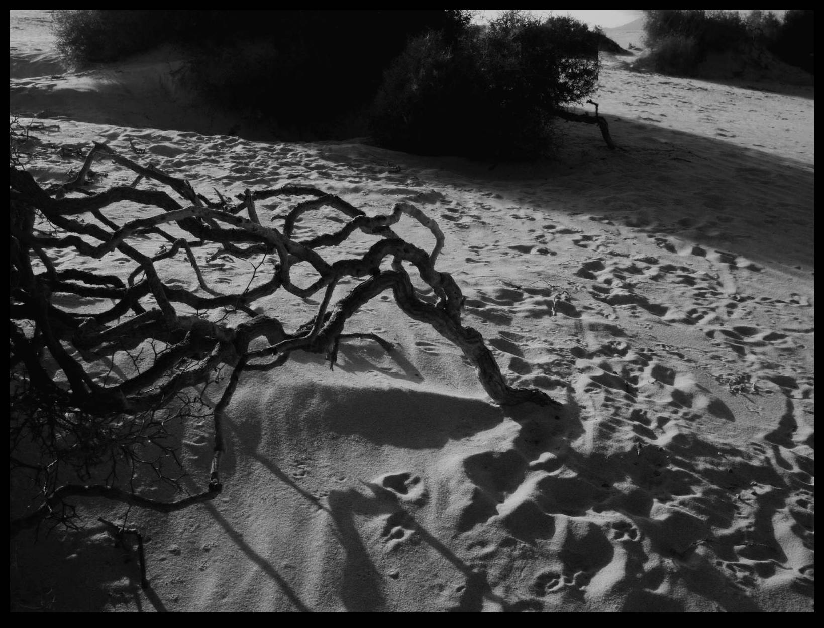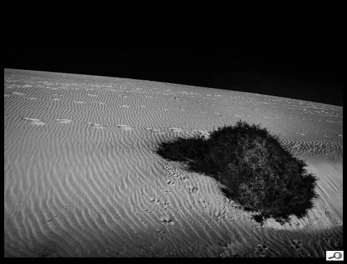Ale už při focení jsem se těšil na černobílou variantu. Tady je, vyretušoval jsem z ní ty šlápoty. Nevěřili byste, kolik je na poušti šlápot! Ano, jakmile jsou barvy nepodstatné, jako zde, pak je černobílá fotka jednoznačné řešení: