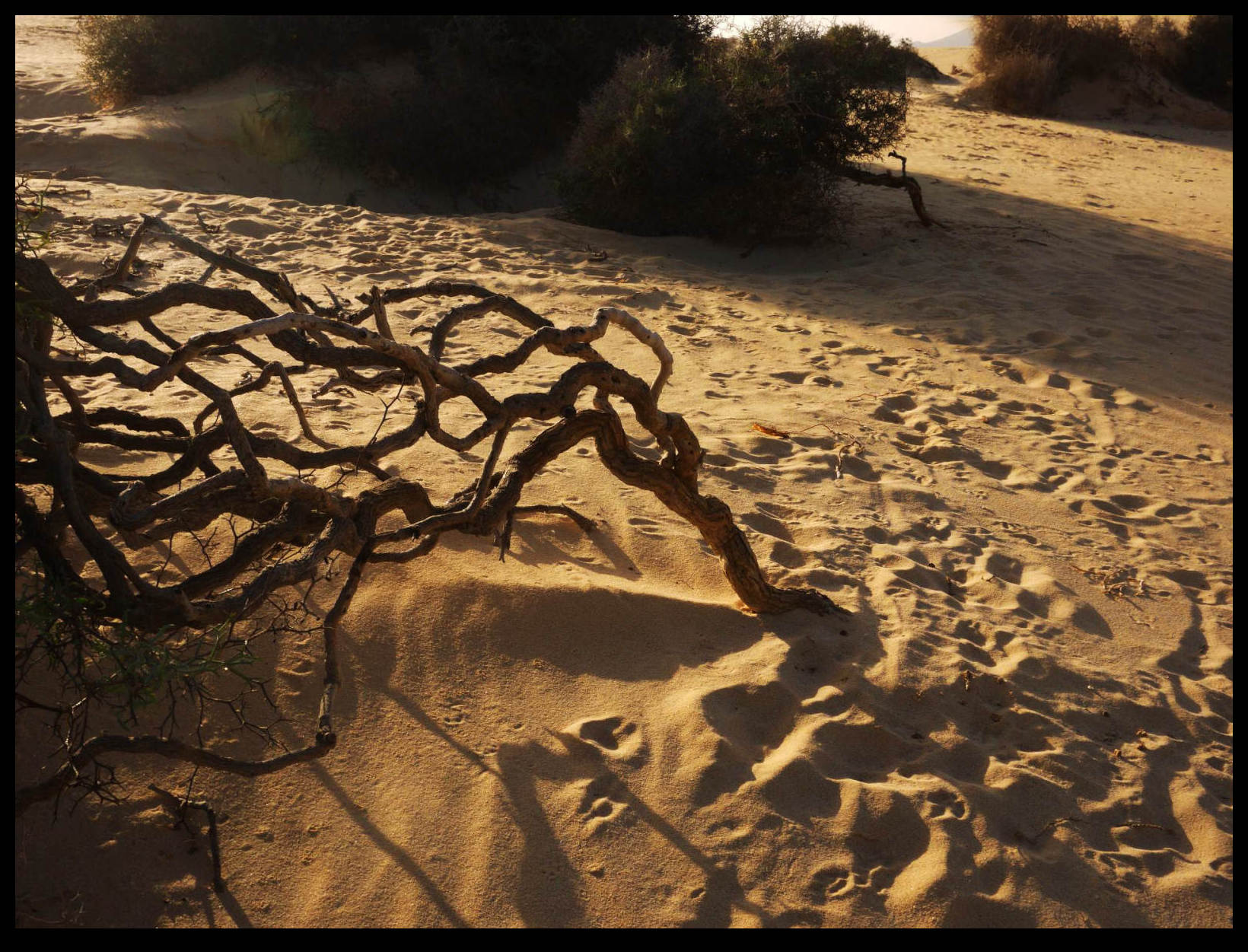 Když jsem si připravoval články do foroty, otevřel jsem si složku s fotkami z ostrova Fuerteventura (Kanárské ostrovy). Tam mají maličkou poušť s originál saharským pískem, nafoukaným od větru. Dostali jsme se sem v ne moc vhodnou hodinu, v jedenáct dopo a to je čas, kdy je dobře o prázdninách sedět někde pod slunečníkem u bazénu. Však taky z toho nevzešla fotka nic moc, například toto:
