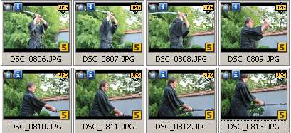 Teprve úpři sériovém snímání roste pravděpodobnost, že zachytíme ten správný výraz. Na těchto osmi snímcích je zachycen děj trvající vteřinu: