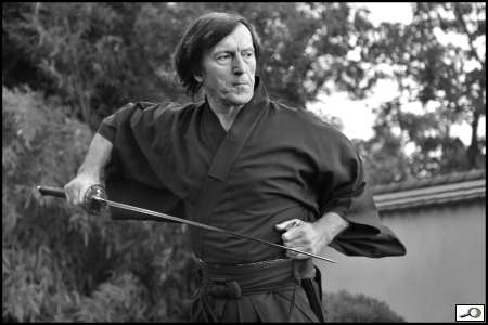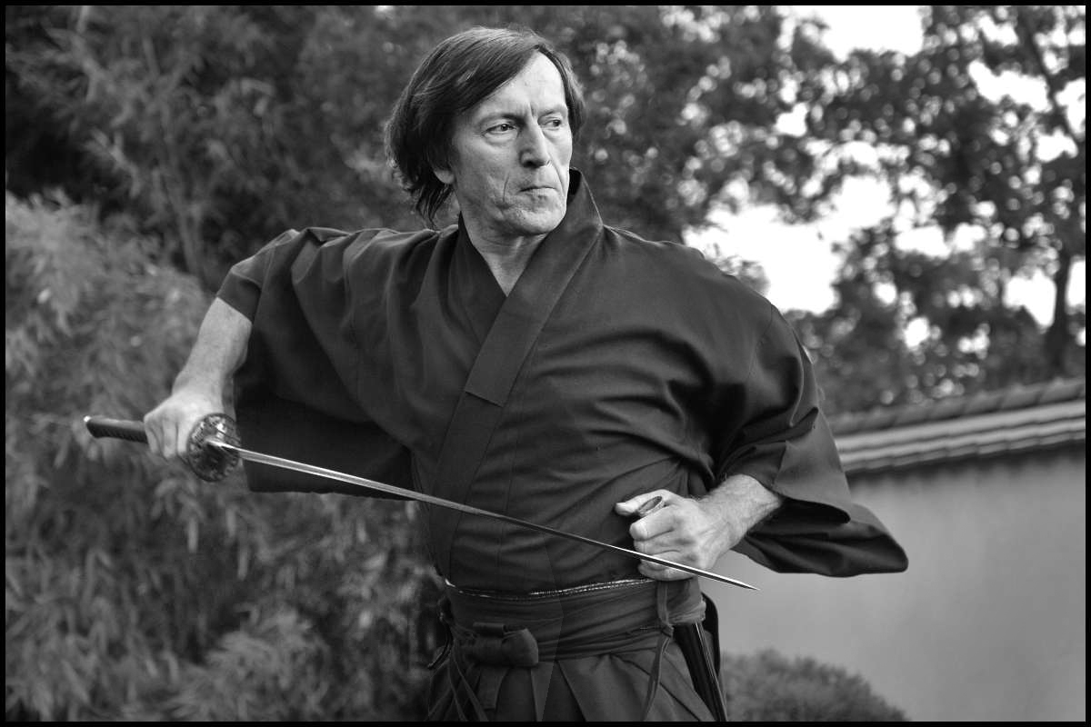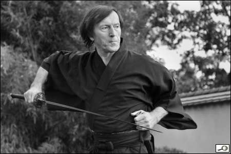 Dal jsem si pozor, aby bambus za rukou s mečem nekončil v rámečku a aby rozmazané větve vpravo tvořily rozumný rámec. No a co dál? Jako barevná mi ta fotka přijde fádní. Asi je to tím, že miluju Kurosavovy filmy, zkrátka, mám pocit, že černobílá by tomu prospěla. Proč ne? Metodou míchání kanálů to jde snadno, v tomto případě jsem nastavil všechny tři kanály na 33% (v Zoneru se to dělá efekty->míchání kanálů, podobně i v PS a PS Elements).
