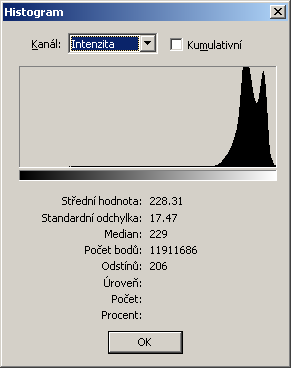 Netřeba asi zdůrazňovat, že starost/b> musíme mít o kraje histogramu, hlavně o jeho pravý okraj v oblasti vysokých jasů. Tam hrozí přepaly, tedy hrozí nebezpečí, že světlá místa se na obrázku slijí do bílých ploch bez kresby. Ale toto, předpokládám, dnes už ví každý. Podívejme se na tento obrázek – je na něm extrémně světlý motiv, bílý vypínač vsazený do bílé stěny: ![]() Zkusme ho vyfotit. Přístroj budeme mít nastavený tak, abychom měli expoziční kompenzaci nulovou. Komu není jasné, co to je expoziční kompenzace, najde vysvětlení v našem článku Expoziční kompenzace z 24.3.2006. Když ale tento motiv vyfotíme, dostaneme takovýto výsledek: ![]() Obrázek je černý jako bota! A jeho histogram? Ten vypadá takto (stejně jako posledně, je to histogram z původní fotky, však taky vidíte, že ta původní fotka má 21 mega (viz údaj počet bodů): ![]() Jak se mohlo stát, že bílý objekt se zobrazil šedě a histogram se usadil uprostřed? A jsme u vyhodnocování histogramu. Vždycky ho musíme posuzovat s ohledem na motiv. Když budu fotit šedivou slepici na hromadě popela, zde uvedený histogram bude v pořádku. Jenže my jsme fotili bílý vypínač na bílé zdi. Co s tím? Musíme přidat na expoziční kompenzaci. A to je příklad spolupráce s histogramem. Zkušenost nás časem poučí, o kolik přidat. Jakmile jde o vysloveně bílé a silně nasvícené objekty, jdeme na hodnoty až +1,3 nebo dokonce +1,7. Výsledek pořád kontrolujeme na histogramu. Korekce nám bude křivku stěhovat doprava – a budeme ji stěhovat tak dlouho, dokud se její pravý okraj nepřiblíží krajní hodnotě 255, tedy dokud si skoro nelízne pravého rámečku histogramu. Pak bude bílý motiv správně exponován, jako je to na obrázku nahoře, a pak histogram bude takový: ![]() Podobného postupu použijeme kupříkladu při fotografování objektů v mlze. Tohle je jeden takový příklad. Fotografováno v mlze, kompenzace +1 EV:: ![]() Histogram potom vypadal takto: ![]() Opačný případ nastává při focení tmavého motivu, kdy nám záleží na tom, aby snímek vyšel tmavě. Příklad je zde – orel v kleci v pražské ZOO byl hodně tmavý, proto jsem šel s expoziční kompenzací do mínusu na -1,7 EV: ![]() Pokud bych do mínusu nešel, obrázek by byl šedivý, bez atmosféry. Takto mám histogram takový: ![]() Pro zajímavost, jelikož snímek byl pořízen v RAW formátu, ukážeme si, jak by vypadal on a jeho histogram bez kompenzace: ![]() ![]() Shrnutí: