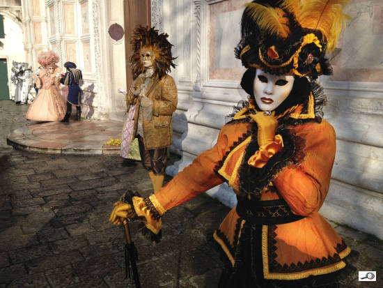 Však taky jsem si tuhle fotku dal jako titul mé knihy Digitální fotografie polopatě. Do Benátek spolu s Ljubou, ta zase má ráda, když jsou masky uvnitř architektury. Někdy se to zadaří: