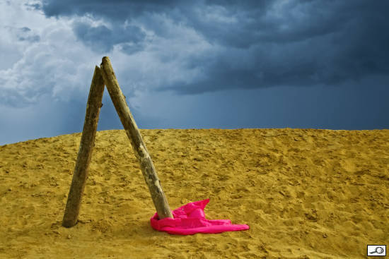 Dnes jsem si prohlížel i článek Soutěž po týdnu. Zaujal mne obrázek hodnocený na 1. místě – Letní romance. Připomněl mi jeden z mých pokusů s vkládáním hezké oblohy místo ploché šedivky. Nechci autora poškodit, ale připadá mi písečná pláž snímaná dost z nadhledu a mraky působí jako z výrazného podhledu. Nevím, jestli by nějaký objektiv dokázal takový rozsah od písku po mraky, aniž by se na bocích projevil efekt rybího oka. Navíc světlo v mracích se zdá přicházet zleva a kolíky jsou v pravém protisvětle. Navíc přechod mezi oběma částmi se zdá dost nepřirozeně ostrý i pro případ, že by ho tvořila hrana písečné duny. Kdybych podobnou montáž poslal do nějaké nesoutěžní galerie, např. Megapixel.cz, tak mě ostatní přispěvatelé – amatéři, roznesou na kopytech.