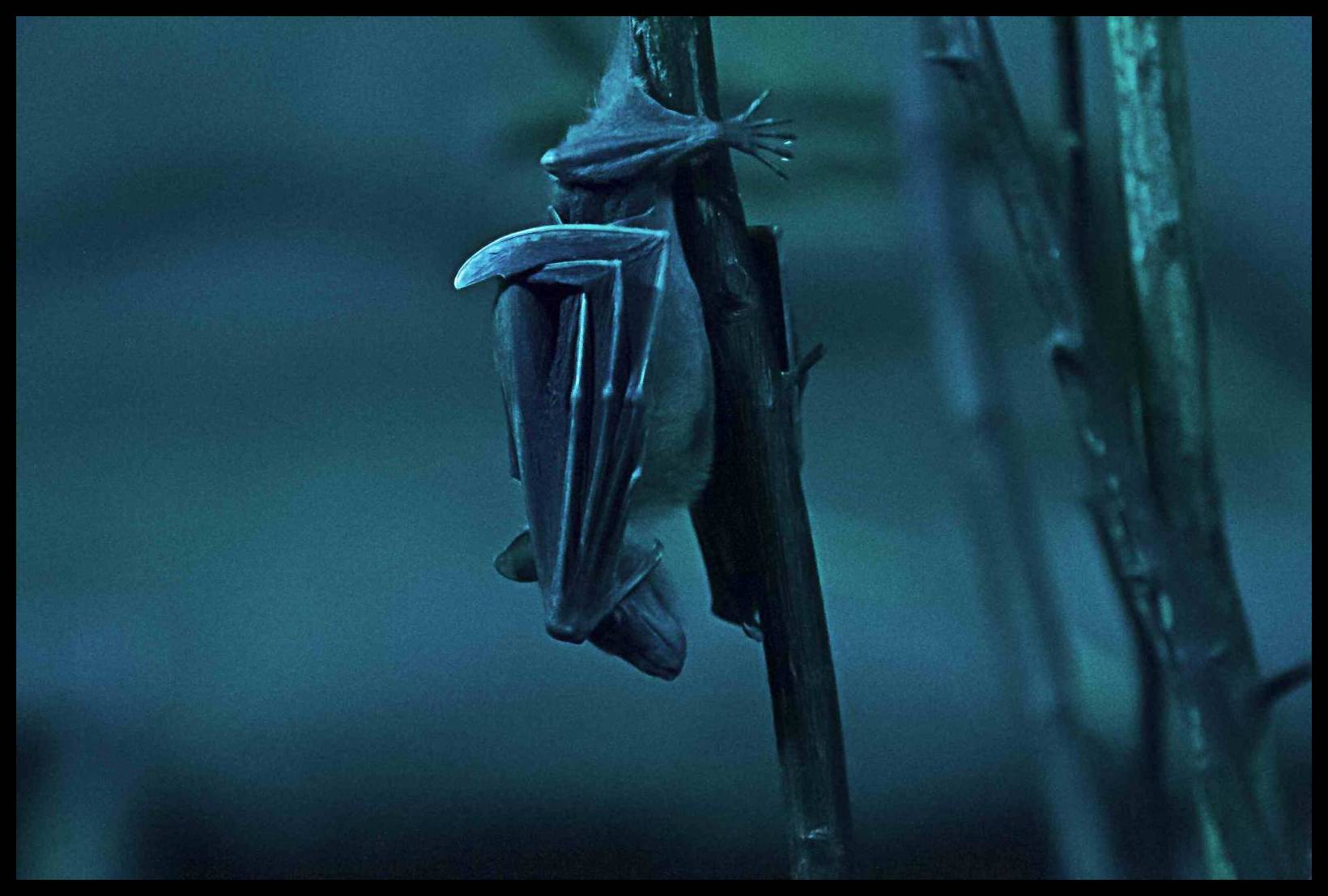Foceno v ZOO prakticky potmě, kaloňové v temném oddělení pavilonu Indonéská džungle, na hranici toho, co je vidět.