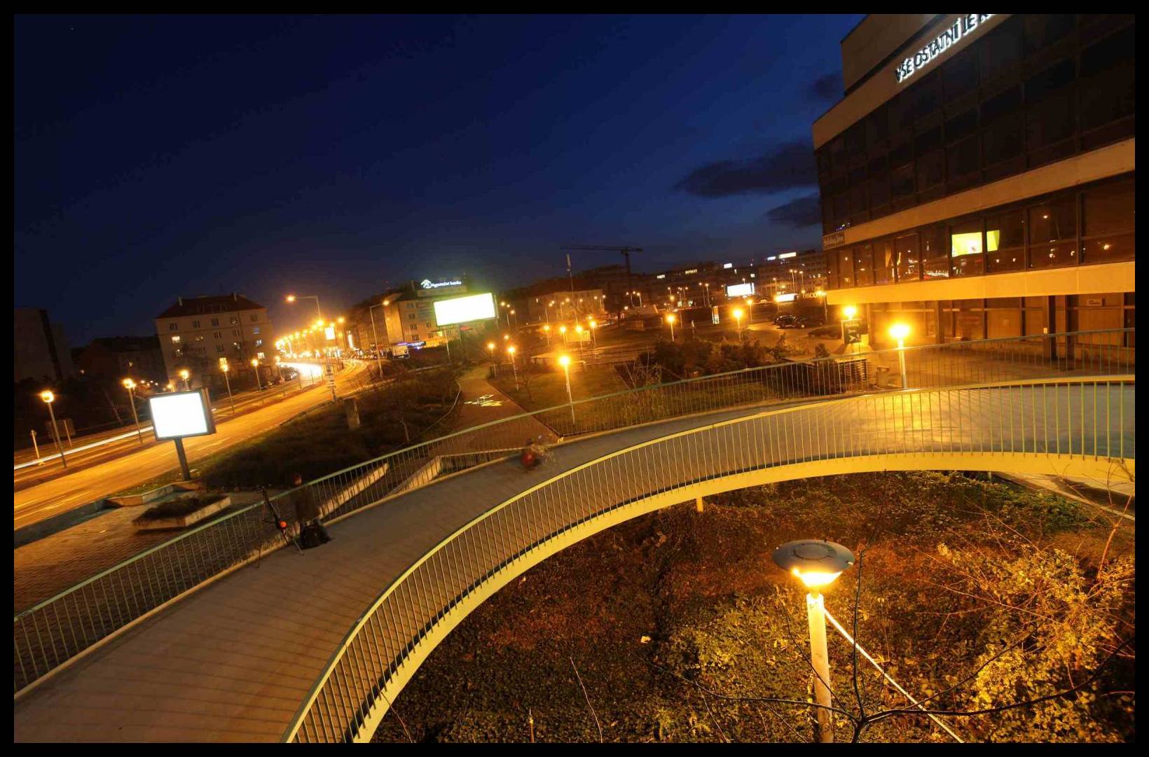 Dobře osvětlená pražská noční scenérie, fotila Marie Kurovská (Dílna)
