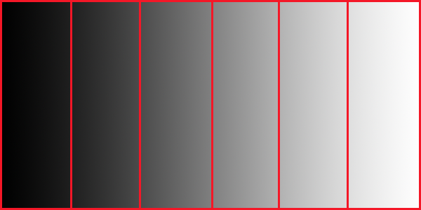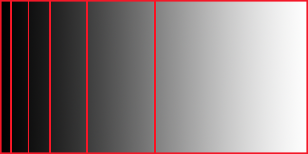 Záznam digitálního obrazu je většinou dvanáctibitový. Dvanáct bitů, to je 212, to je dohromady 4096 odstínů. Zde připomenu, že obrázek JPG je osmibitový, takže obsáhne jen 256 jasových stupňů. My ale jsme zatím na úrovni RAW formátu a ten typicky obsáhne maximum 4096 různých jasů, od černé do bílé. Tyto jasy jsou tedy rozloženy do šesti stupňů jasového rozsahu, jakoby “oddělení”. Vlevo je oddělení pro černou a hodně tmavé, vedle taky tmavé ale míň tmavé, atd. až se vpravo dostáváme ke světlým, hodně světlým tónům až k bílé. Že by takto?