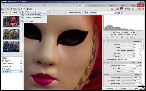 V druhé fázi vyberu obrázky – stejně jako se to dělá v Manažeru, obvyklým způsobem, klepnutím myši, nebo vybrat všechny přes Shift anebo postupně přes Ctrl. No a když už jsem v tom, pod položkou Fronta dám všechny vybrané do fronty na zpracování.