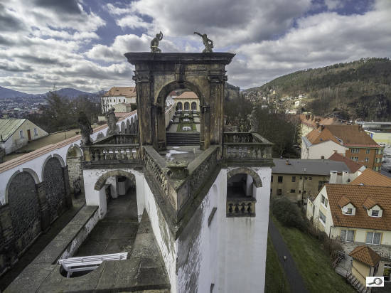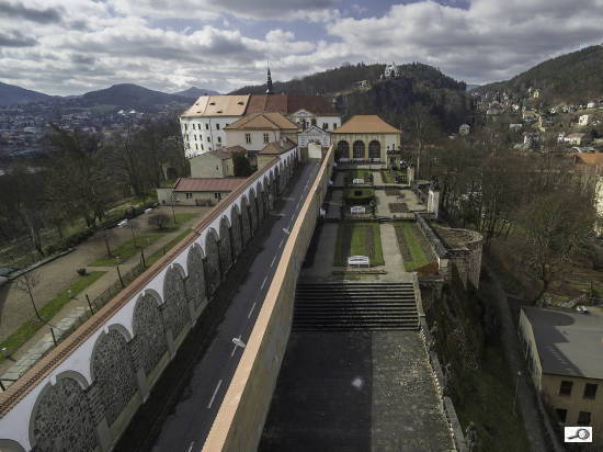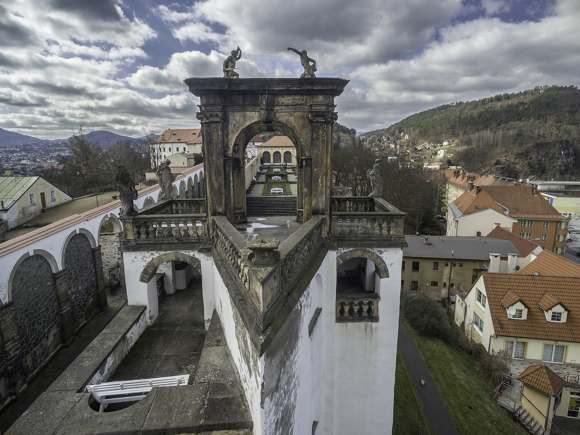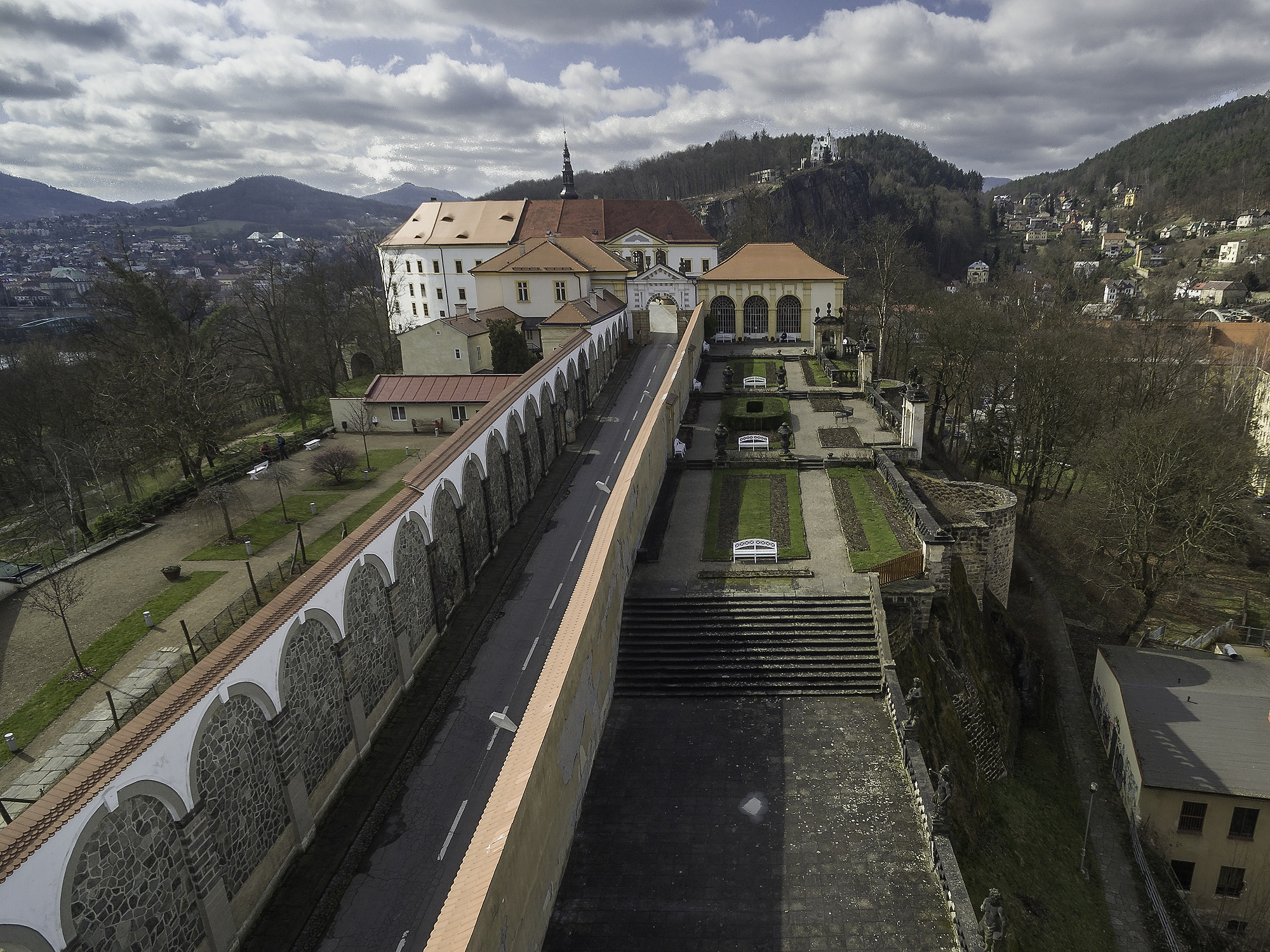 Fotoaparát zavěšený pod strojem má objektiv s ohniskem odpovídajícím 20 mm kinofilmu, je to pevné ohnisko, bez možnosti zoomu. Světelnost má vysokou, F2.8. Iso se pohybuje od 100 do 1600, umí ukládat do RAW (DNG) a umí bracketing. Právě toho Ladislav využívá, protože takto pořízené fotky skládá do HDR obrázku. Ona snímky zámku v Děčíně, ten nahoře i zde vespodu, jsou HDR.