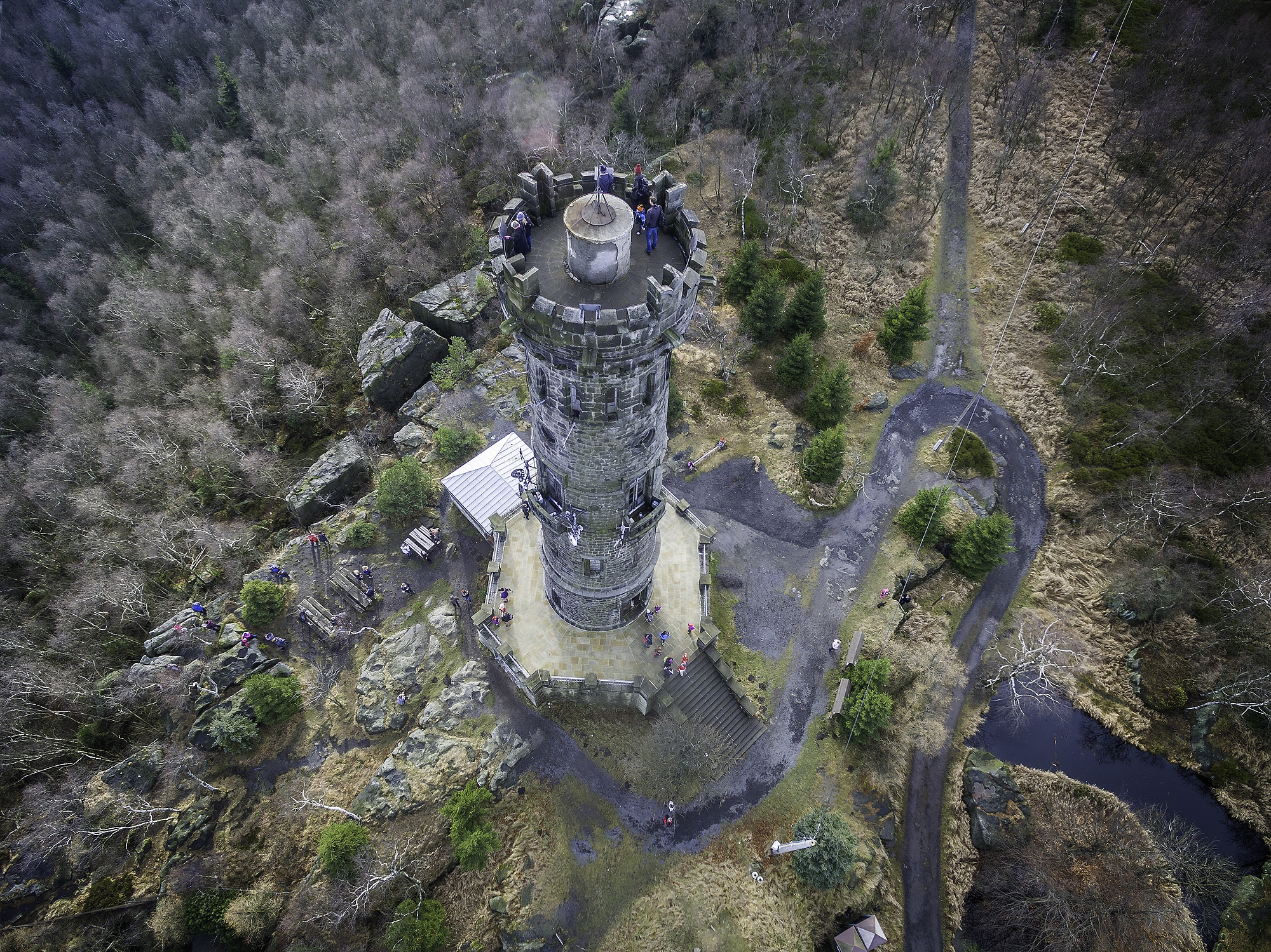 Na těchto dvou ukázkách je Děčínský Sněžník, nahoře kamenná rozhledna z roku 1864. Ladislav má zkušenosti s létáním, takže jeho hlavní letecká zásada je pokora a z ní plynoucí opatrnost. Vždy dbá na to, aby dron v letu viděl, problematické je létání v dešti a mlze, tomu je třeba se vyhnout, radí.