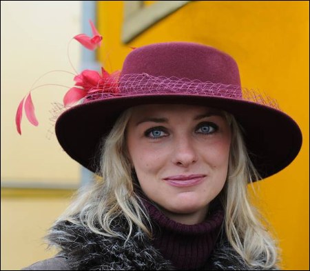 Na dalším snímku I.Baierové je patrný problém vyvolaný okrajem klobouku: do obličeje vrhá stín. Tady je každá rada drahá, jistě že by problém mohl být vyřešen zábleskovým zařízením. Kompozičně je snímek v pořádku,je živý, hlava je ve formátu dobře umístěná.
