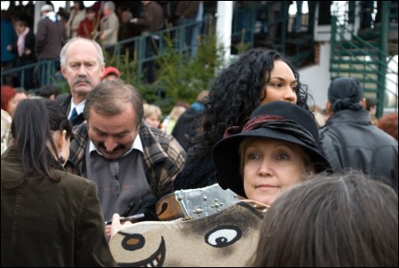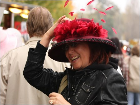 Focení dostihového sportu je samozřejmě náročná a krásná disciplína, avšak je prakticky nemožné nějak kloudně fotit, aniž by fotograf měl akreditaci přímo na závodiště. Z tribuny by se snad dalo něco vyfotit – pomocí extrémně dlouhého skla. Účastníkům Dílny jsem tedy radil, aby se soustředili jednak na “závody” projektu Medela, jednak na zajímavé lidské typy mezi diváky.