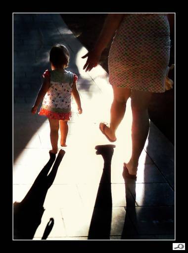 No a ten pohyb, to je jádro sdělení. Symetrický nákrok, dětsky capavý a maminkovsky rázný a gesto ruky, nabízející oporu, to naznačuje vztah maminky a holčičky. V těchto nepatrných gestech je zakódovaný příběh… a to je na fotce to pěkné.