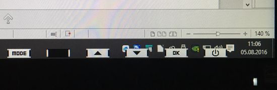 Ještě dodám, že sama instalace byla ideální příklad Plug and Play, prostě jsem ho připojil k počítači a Windows 10 pořešily nový počítač jako hlavní a přiřadily druhý počítač jako pomocný. Naprosto nebylo nutno nic nastavit – jenom jsem si chvilku hrál s nastavením velikosti textu. Defaultně je to 100%, pak je třeba ve Wordu nastavit velikost písma – mně vyhovuje 140%. Ovládání je velmi příjemné. Spodní část displeje je dotyková a stačí sáhnout v podstatě kamkoli do oblasti menu – odhadnete , aby to bylo dost daleko od kontrolní diody, abyste si monitor omylem nevypnuli. Takto vypadá ovládání Mode, tedy barevného profilu: