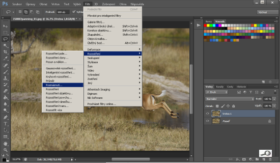 Vrchní vrstva je mázlá v režimu Rozsostření – Rozmáznutí: