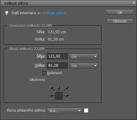 ukotvení: tím určíme, kterým směrem se bude plátno zvětšovat. Ve výchozím nastavení je čtvereček uprostřed a šipky jsou paprskovitě na všechny strany. V tomto případě si ho posuneme