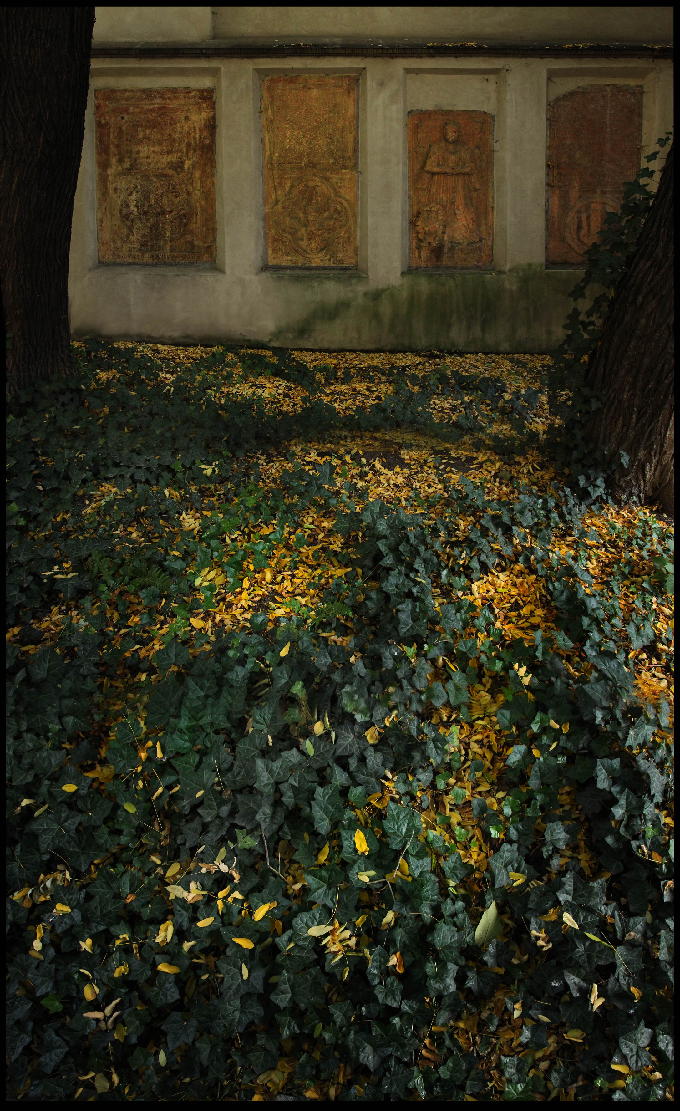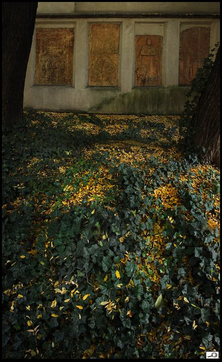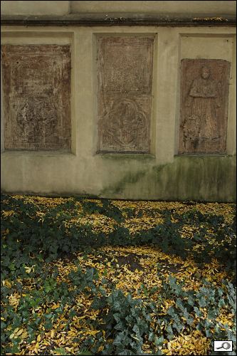 S posluchači seminářů Dílny chodíme ke kostelu sv. Štěpána. Je to tam moc hezké a dobře se tam fotí. Mimo jiné je tam za nízkým plůtkem kouzelné zákoutí s břečťanem a středověkými náhrobky. Vyfotil jsem to Canonem EOS 60D a objektivem 17-40/4 a vyšlo to takto: