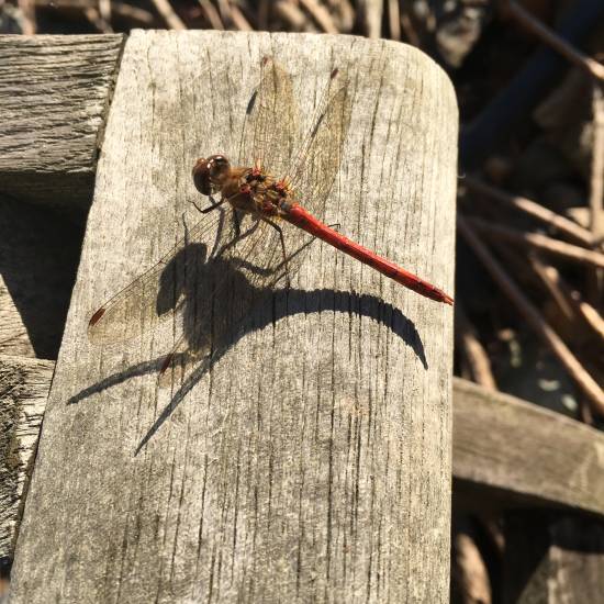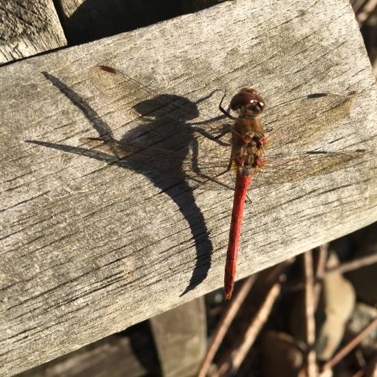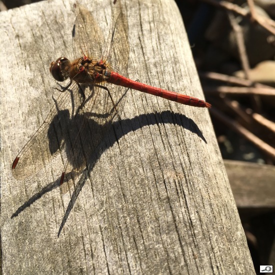 Teď už musí zakročit společnost pro ochranu vážek… Nemusí. Vážka uletěla… ale ne daleko. Sedla opodál a dělala na mne dlouhé nosy. Dlouhé stíny.