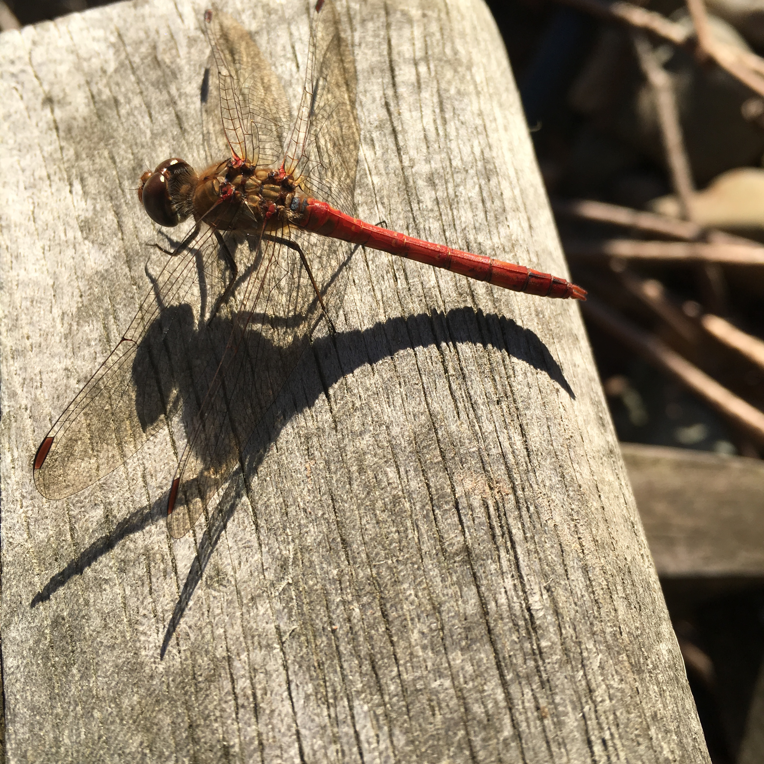 Teď už musí zakročit společnost pro ochranu vážek… Nemusí. Vážka uletěla… ale ne daleko. Sedla opodál a dělala na mne dlouhé nosy. Dlouhé stíny.