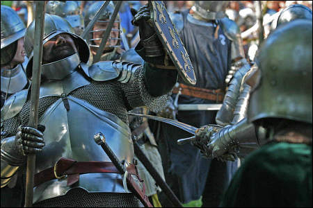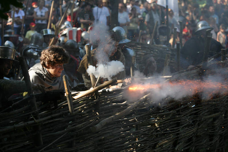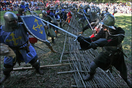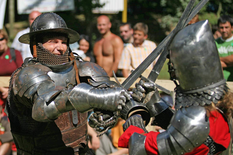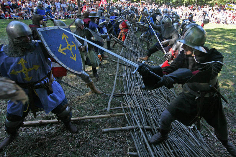 Zastavím se u několika praktických věcí. Princip akce byl jednoduchý: muži (a také ženy) v historickém odění a zbroji spolu zápolili v exhibičních utkáních a nakonec svedli bitvu, jíž se účastnilo podle mého odhadu na tři stovky lidí.
