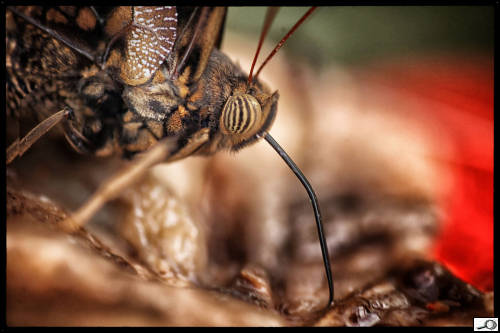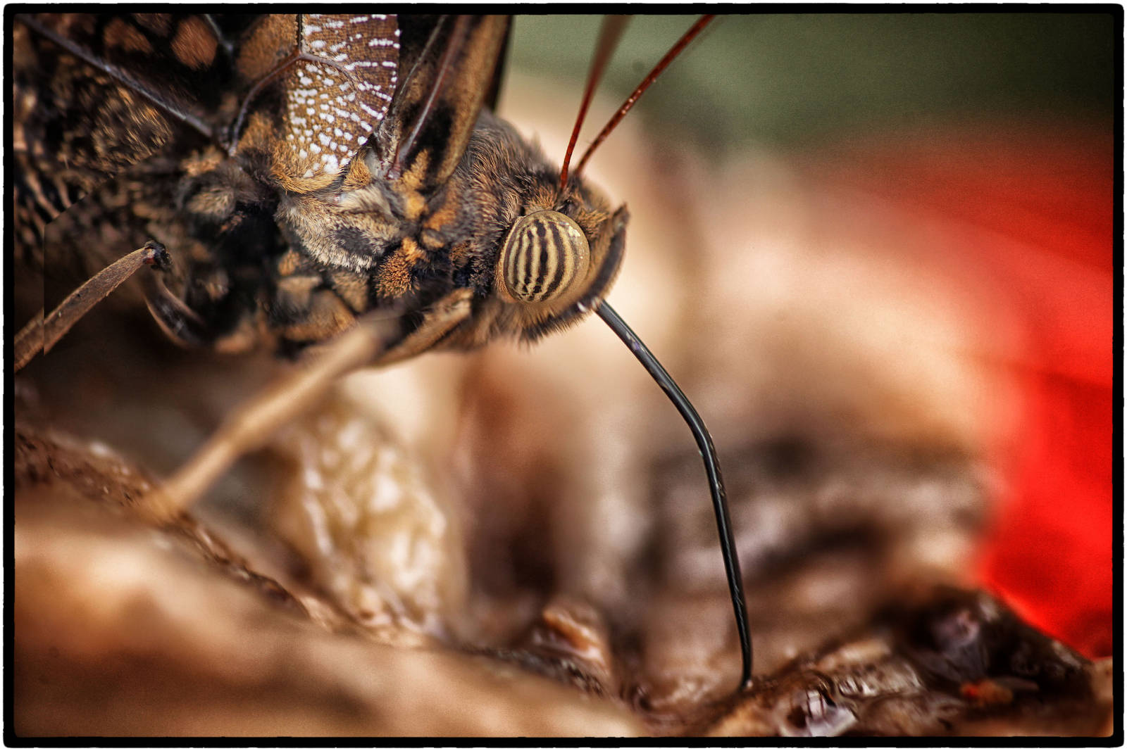 Nicméně jsem to bral jako takové školní cvičení. Nuže, ostřit je třeba na hlavu, tedy především na oko. To ostatně platí obecně, když fotíme jakoukoli hlavu… lidskou nebo zvířecí. Neostrost čehokoli vám odpustí, neostrost očí nikoli. Oko do duše okno a pro motýly to platí taky.