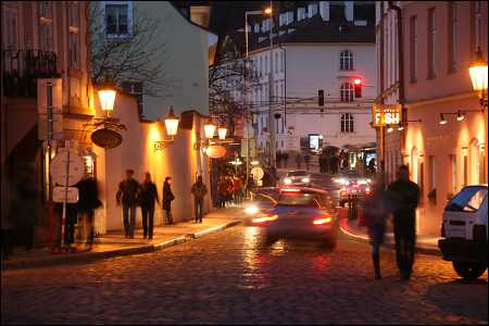 No a kolem té páté nastala ta správná chvíle, kdy jas oblohy a osvětlené domy jsou více méně ve světelné rovnováze a iluze noční fotky je maximální, ale fotky ještě nemají nepříjemný kontrast: