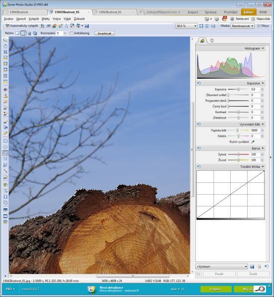 Detaily lze upravit výběrovým štětcem – to, co jsme vložili ze schránky, je fakticky vrstva a výběrový štětec je fakticky nástroj pro maskování této vrstvy. Takže, suma sumárum, i Zoner je pro tento proces uzpůsobený a můžeme ho s prospěchem použít.