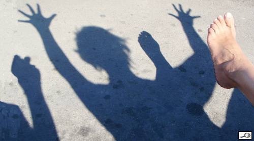 Stín je vděčný motiv na fotografii. Autor, je to Wilfried Brudny, si tu zahrál s dvojím stínem – dal dohromady stíny nějakých nezbedů se stínem nohy. Je to samozřejmě hříčka bez aspirace vyvrtání díry do světa! Nicméně je to zároveň i pobídka k experimentování tohoto druhu. Jde o užitečné cvičení, protože si všímáme neobyčejných tvarů a souvislostí, jichž si ne – fotograf nevšimne. Dejme tomu, kompoziční cvičení.
