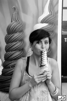 Tahle fotka Antonína Wisniowského taky ve mně vyvolala rozporné pocity. Dostal jsem chuť na zmrzlinu, to jistě. Zmrzlina je jistě dobrá, ale co ta fotka? Jenže ona má něco do sebe. Je svým způsobem nesmyslná, ale jistě je provokativní. Mladá dáma má zmrzlinu jak cep a další zmrzliny jsou za zády, je to nesmysl, ale člověk na to udiveně zírá. Navíc je to velmi dobře technicky vyvedeno.