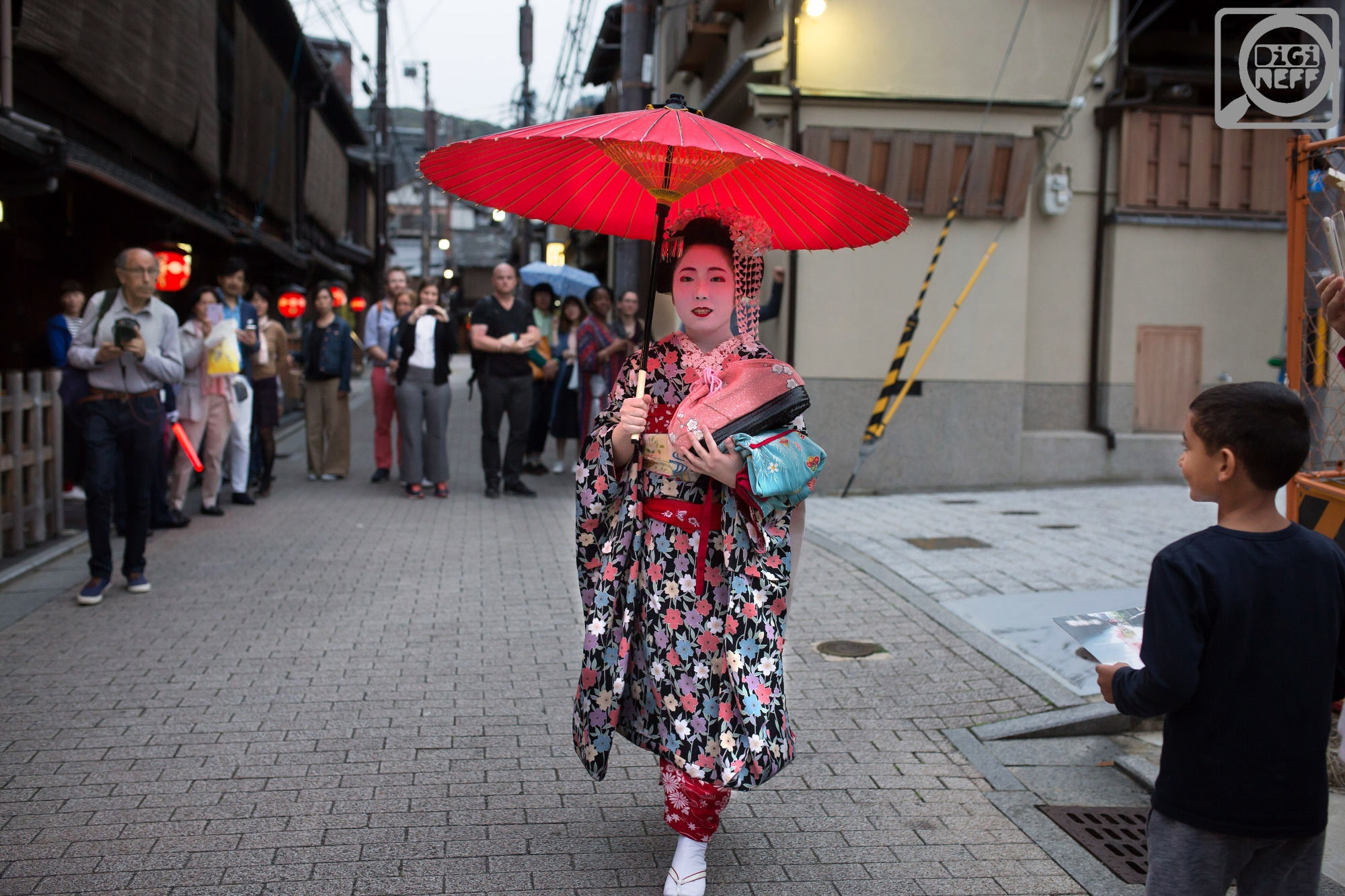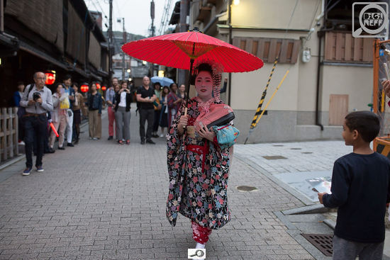 Byla to nenápadná ulička, dokonce poněkud ošklivá, protože měla na jedné straně nějaké lešení, nebo co. A najednou začaly chodit gejši. Ne všechny byly – podle evropského vkusu – vrchol půvabu…