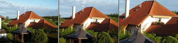 Zajímavou funkci nabízí sériové focení. Sekvenci uděláme moc pěknou, pak musíme poměrně dlouho čekat na uložení . Bohužel výsledné třímegové obrázky jsou kresebně hodně ošizené, jakoby to byly interpolované VGA snímky – rozhodně kvalitou neodpovídají standardu běžné třímegové fotky (viz ukázku na proklik). ![]() Bracketing zoomu je zde dvojí. Ten nastavitelný na kruhovém voliči je prakticky to, co se jinde nazývá “chytrý digitální zoom”, tedy série snímků s výřezem: 3648×2736, dále 2592×1944 a 2048×1536 pixelů: ![]() Přístroj však nabízí ještě jeden podobný bracketing zoomu, tentokrát je to ve směru “dolů” na čtyřcestném voliči, kdy též obraz “skáče”, ale v plném rozlišení, na šířku i na výšku. Tentokrát jde o běžný digitální zoom, nicméně velmi dobře použitelný – pravidelní čtenáři vědí, jak se tu obvykle o digitálním zoomu zmiňuji. Tedy – vzhledem k tomu, jak rychle se zde zoomuje, myslím, že i tentokrát je to jaksi “funkce navíc”, nicméně rozhodně stojí za vyzkoušení. Stabilizace je zde účinná, lze udržet i hodnoty kolem 1/10 sec s uspokojivým výsledkem. Shrnutí Pro a proti: