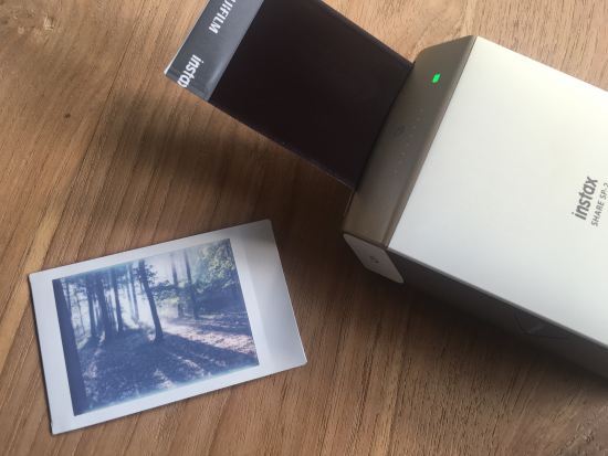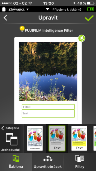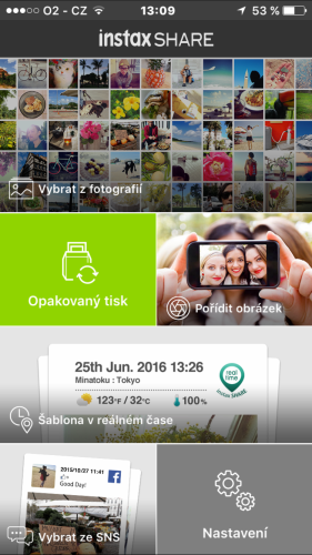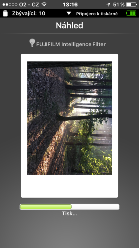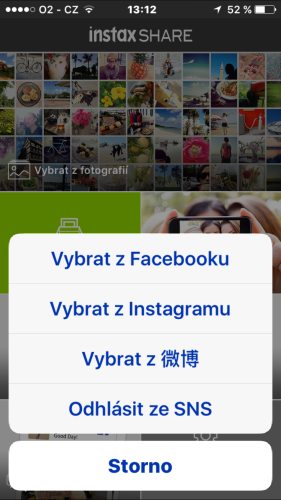 On to ani není tisk v pravém slova smyslu, je to osvit světlocitlivého materiálu, který se vyvolává. Motorek protáhne osvětlený list mechanismem tiskárny, tím se aktivují příslušné chemikálie a potom na světle za minutu, za dvě vyvstane obrázek. Je to tedy stejný proces jako ve fotoaparátu Instax, jenomže data přijdou z mobilu. K tomu je třeba specifická appka Instax Share, která je jak ve verzi |Android, tak ve verzi iOS. Tato appka buď stahuje fotky z FB nebo Instagramu, nebo jí dovolíte vám sáhnout do fotek ve fotoaparátu. Appka umožní ořez, elementární úpravu fotek a doplnění šablonami a texty.