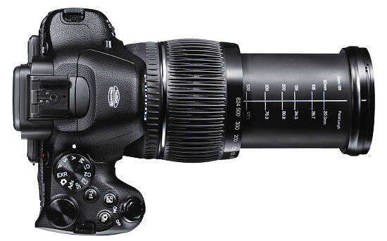 Přístroj má přijít do prodeje až 10. dubna, v BH v New Yorku ho nabízejí za 800 dolarů. Patří tedy cenově do nejvyšší kategorie mezi kompakty a za míň peněz dostanete třeba zrcadlovku Canon 1100D se dvěma objektivy. Vzhledově přístroj zrcadlovku silně připomíná, i rozměry a váhou. Je „DSLR like“ do té míry, že má i zvláštní slot pro kartu, přístupný z boku a nemá ho tedy společný zezdola, jak to u kompaktů bývá – výborné, když fotíme ze stativu. Kolem čipu o rozměru 2 /3 palce (8.8 x 6.6 mm) je vybudován rozsáhlý a důmyslný systém, který by měl vyhovět všem běžným fotografickým úkolům. Ovládáním silně připomíná model X-10. Samozřejmě zcela jiný je objektiv, tento má opravdu gargantuovské rozpětí od 24 mm do 624 mm, tedy od příjemně širokoúhlého objektivu do silného teleobjektivu. Stabilizace je zde nejen samozřejmostí, ale i nutností. Navíc, je dobře ji mít stále zapnutou, protože při větším vyzoomování se vám obraz v hledáčku s rozlišením 1.4 milionů pixelů nepříjemně klepe. Objektiv s devítilamelovou clonou a 17 členy ve 12 skupinách v kovovém těle je velmi světelný, na kratší straně má F 2.8, na clonu F4.0 skočí někde za hranicí ekv. 100 mm, na 300 mm má krásných 5.6 (kdo z vás, pánové, na to má) a zůstane na této hodnotě až do oněch ekv. 624 mm. V supermakru dokáže jít až na vzdálenost 1 cm. To je mimořádný optický výkon a být to samostatný objektiv s tímto rozsahem a světelností (žádný takový není, ale „kdyby“), jistě by stál víc než těch očekávatelných 16 tisíc. Na trhu je Finepix HS20 EXR s třicetinásobným zoomem, ten sotjí 8 tisíc (únor 2012), ovšem má čip jen 1 / 2 palce velký.