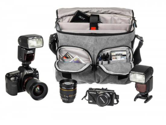 Brašna, kterou jsem si mohl vyzkoušet, měří 37 x 17 x 29 cm, váží 1338 g. Je tedy sympaticky široká a hlavně hluboká: má na dobrém místě uchycený popruh, takže nehrozí nebezpečí, že se převrhne. Najdeme na ní množství kapes: vpředu i po stranách dvě, uvnitř a také vzadu. Je to řešení hodně podobnému Domke (ten používám já) – ta zadní kapsa je na můj vkus moc malá, je spíš tak na nějaký notes, ale ultrabook by se mi do ní nevešel, ovšem dovnitř se vejde bez problému. Je to věc zvyku – na Domkem je výhoda, že ho mám venku, tady by byla výhoda, že je uvnitř… 🙂