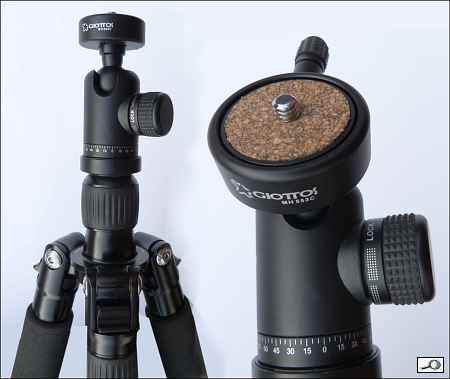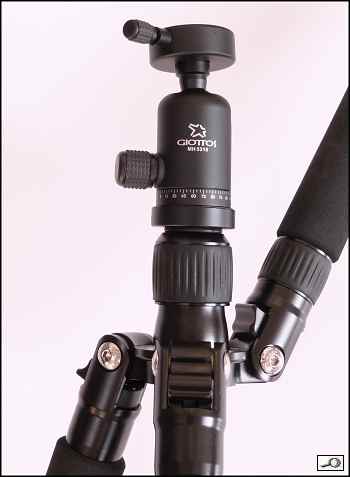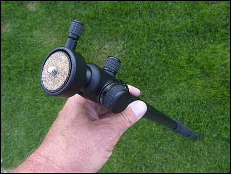 Oba stativy jsou vybaveny kulovou hlavou. Na ukázce je hlava použitá na karbonovém modelu, ale principiálně jsou obě stejné. Mají střední aretační kolečko. V hlavě je destička, ta jediná budí trochu moje pochyby. Je malá, přirozeně že tu čteme snahu o minimalizaci rozměrů a váhy. Ne moc šikovně se zasazuje, musíte se trefit zářezem do vrcholu aretačního šroubu. Není tu tedy obvyklá páčka, ale ta asi by zvýšila váhu o pár gramů .