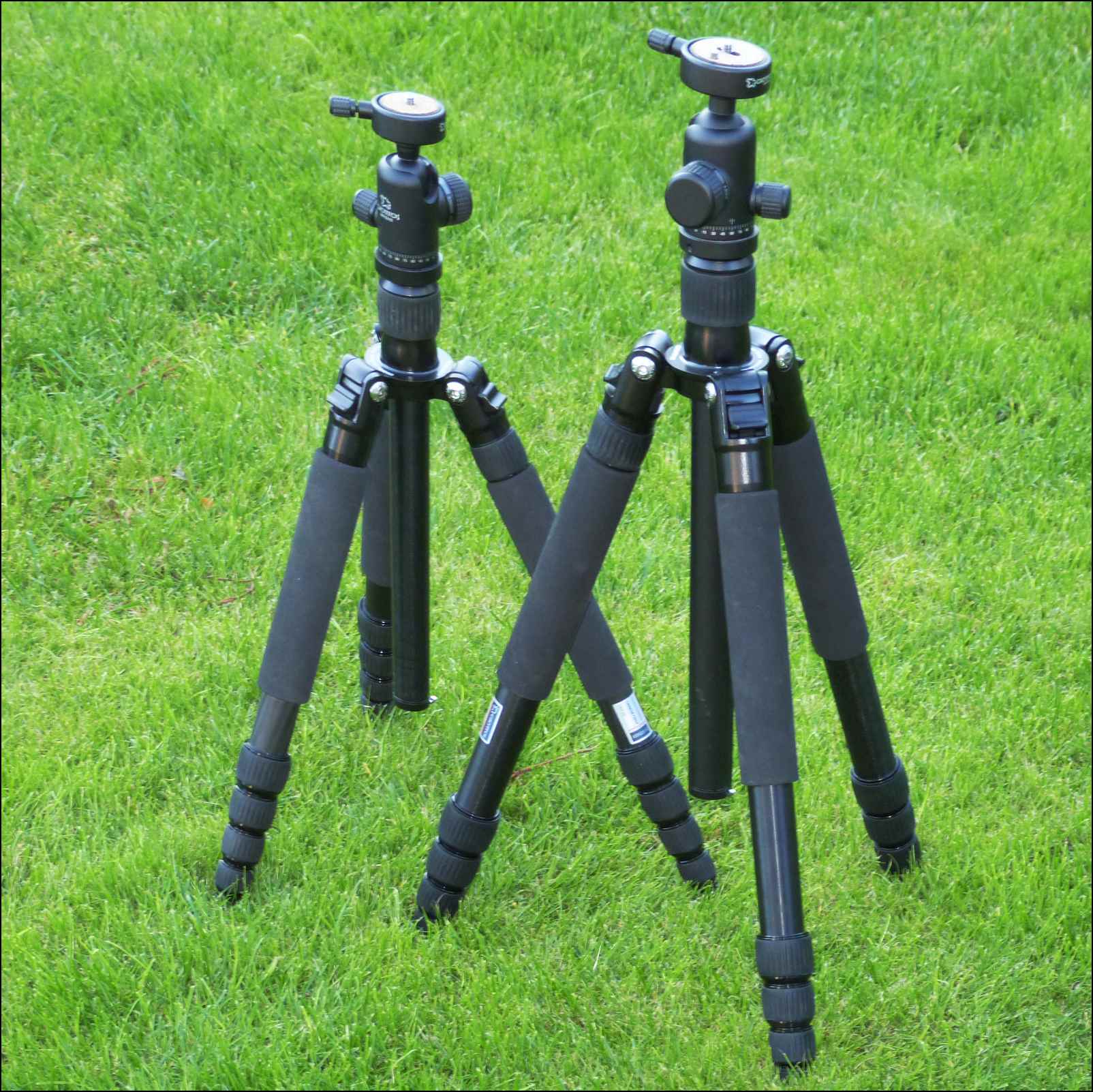 Takhle oba stativy vypadají. Nemají žádné shodné díly, jen princip obrácení naruby mají shodný. Ovládání kulové hlavy je tedy stejné. No a jak se liší ten hliníkový od karbonového?