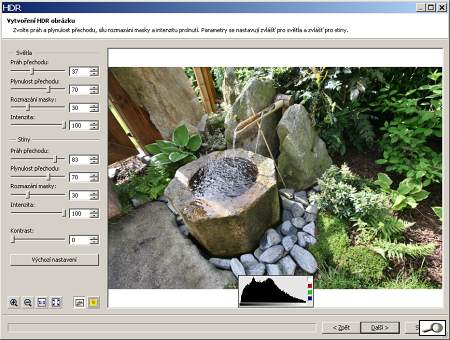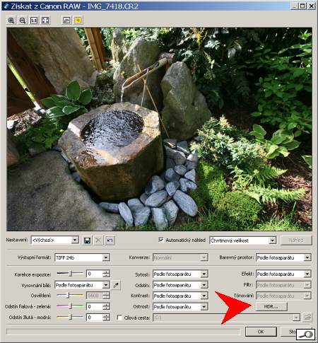 Opáčko – co je HDR HDR a RAW Photo Studio 10 je první verze tohoto programu, která je HDR utilitou vybavena. Podívejme se na způsob, jak se to dělá nejjednodušeji. ZPS 10 je schopen přímé konverze RAW formátu Canonu – s koncovkou CR2. Proces je velmi jednoduchý – v Průzkumníku vybereme snímek (nebo více snímků, lze převádět i sérii fotek) a volíme Získat z Canon RAW. Lze ale zpracovávat i RAW formáty jiných výrobců, přes Adobe DNG převodník. ![]() Touto volbou otevřeme běžný RAW konverzní modul. Zde především volíme výstupní formát, základní nastavení je TIFF, lze volit i JPEG. Záleží na úmyslech, jaké se snímkem máme, TIFF je lepší, JPEG úspornější. Nás ale hlavně zajímá volba vyznačená zde šipkou. Je do generování HDR obrázku. Screenshot si můžete zvětšit. ![]() Tato volba je cesta k automatickému vygenerování a následnému spojení tří dílčích obrázků. Otevře se tento dialog: ![]() Zde nastavíme míru přeexpozice a míru podexpozice. Na tomto snímku nemáme dramaticky nasvícené jasy, takže podexpozice stačí jen maličká. Stíny rozsvítíme přeexpozicí, stačí +1 EV, někdy je ovšem třeba brutálnějšího zákroku (hranice jsou +- 2 EV). Pak si chvilku počkáme. ![]() Musíme dát editoru čas na vygenerování dílčích obrázků. On nám je pro pořádek ukáže: ![]() Nezbývá než poklepat na další a nastává nejdůležitější fáze. V následujícím dialogu nastavujeme světla a stíny a kontrast tak, aby výsledek co nejvíce odpovídal naší představě. ![]() Nejlépe je začít z výchozího postavení a pak laborovat se světly a stíny. Kdyby se stíny málo projasnily, je třeba se vrátit a ve volbě přeexpozice nastavit vyšší hodnotu. V posledním kroku lze výsledný obrázek buď uložit bez další úpravy, nebo otevřít v editoru a dál běžně editovat. Výsledek je dobře patrný na srovnání s původním JPEG obrázkem (pořízeným souběžně s RAW verzí): ![]() Pro pořádek zde máte ještě odkazy na plné formáty obou snímků: zde je zpracovaný HDR, zde obyčejný JPEG. Nutno ještě dodat, že pro tuto metodu se lépe hodí obrázky s velkým rozpětím jasů a s mnoha detaily, jakmile jsou v obraze plochy, typicky obloha, vznikají nepříjemná přechodová pásma mezi jasy a stíny. Tady jsou také, ale nevšimneme si jich. |